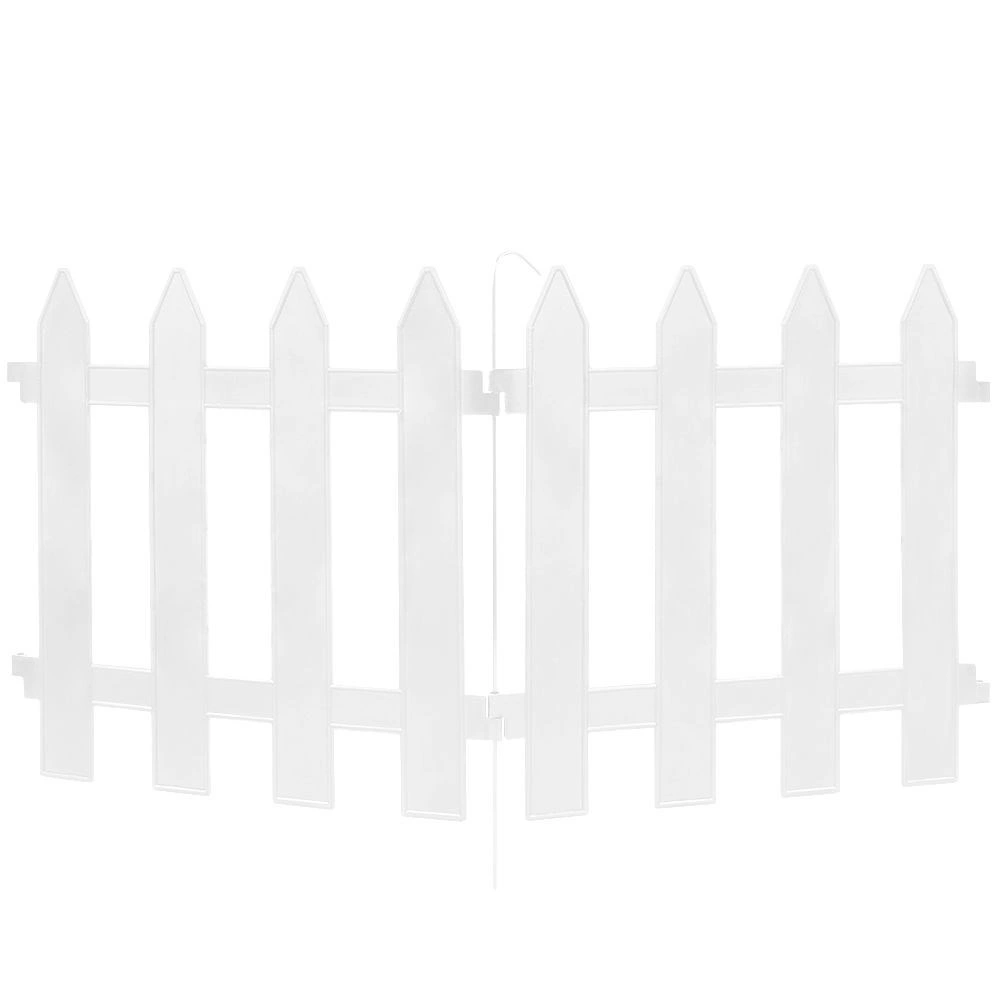 Gardul decorativ alb creează margini elegante pentru straturi, alei sau peluze. Setul de 10 panouri cu dimensiunea de 30 × 30 cm oferă o lungime totală de până la 300 cm. Elemente din plastic rezistent, cu conectori metalici, asigură montaj ușor, durată lungă de viață și rezistență la îngheț, radiații UV și ploaie.