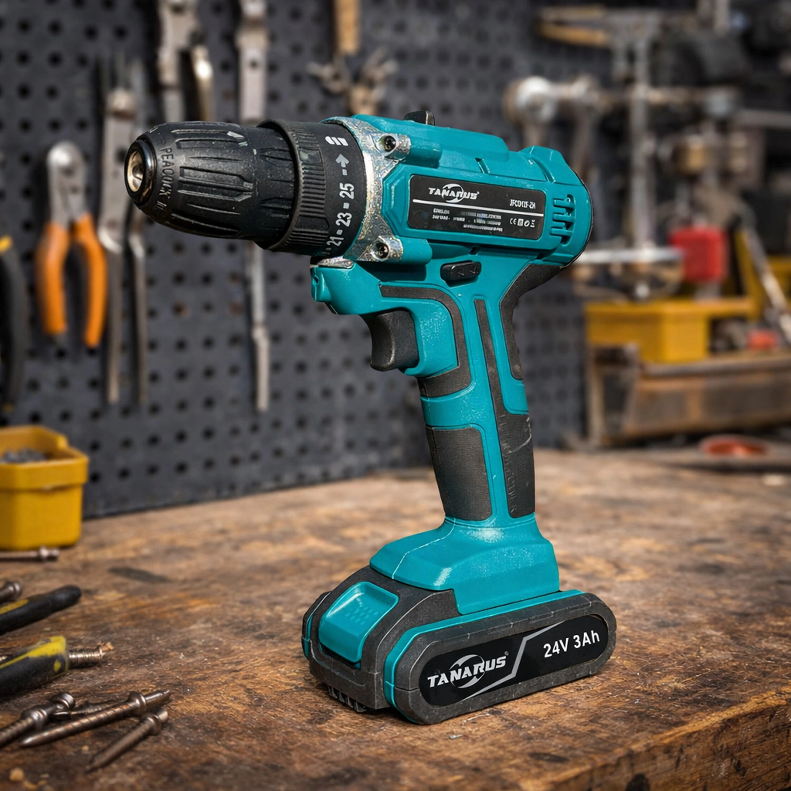 Motorul de 24 V oferă suficientă forță pentru găurire rapidă în lemn, metal și plastic, precum și pentru înșurubare eficientă fără efort.