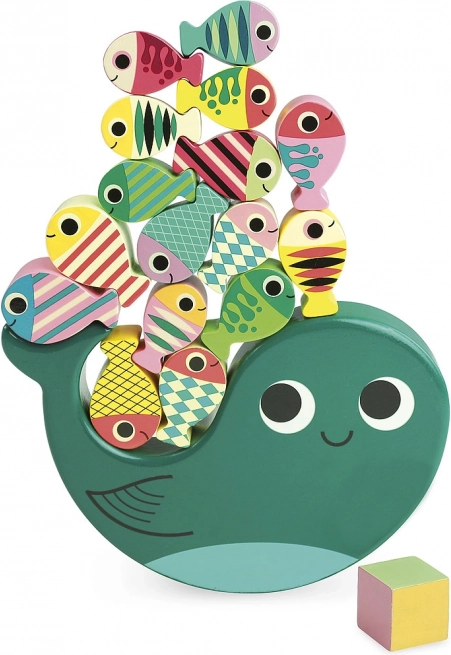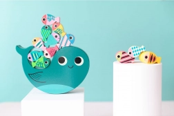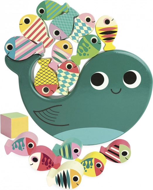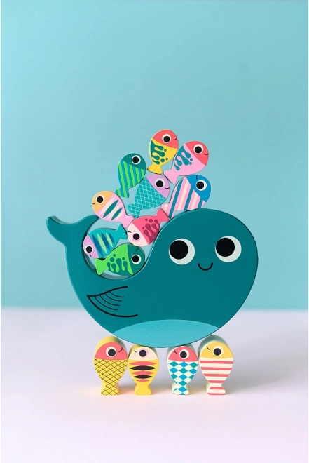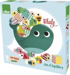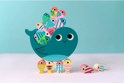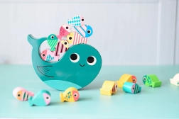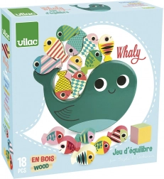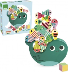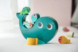Puneți peștișorii pe balenă astfel încât să nu se răstoarne! Acest joc nu este doar o distracție grozavă, ci stimulează și abilitățile motorii fine și coordonarea vizuală-motorie la copii. Materialele de calitate și abordarea ecologică de producție asigură că jocul este nu doar sigur, ci și prietenos cu mediul.