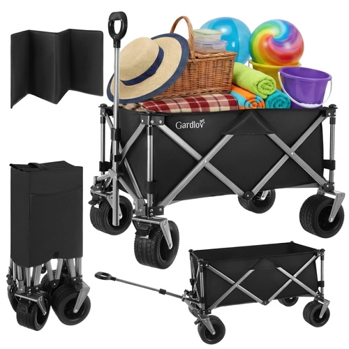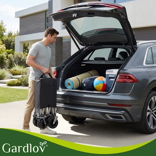 Căruciorul pliabil universal GARDLOV este ajutorul ideal pentru grădină, plajă, camping și casă de vacanță. Oferă capacitate portantă extraordinară de 200 kg, volum mare de 150 l și țesătură Oxford 600D impermeabilă, cu strat PVC. Datorită roților late pentru teren variat, roților din față pivotante 360° și mânerului telescopic, transportă cu ușurință încărcături grele sau voluminoase, iar după utilizare se pliază rapid la dimensiuni compacte.