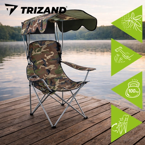Bucură-te de confort la apă sau în camping cu scaunul pliabil TRIZAND PANAMA. Oferă copertină integrată cu plasă anti-țânțari, structură stabilă până la 100 kg, șezut lat și spătar înalt pentru șederi îndelungate fără oboseală. Țesătură rezistentă Oxford 600D, picioare plate anti-afundare și cotiere practice pentru confort în natură. Se pliază și se transportă ușor în husă – ideal pentru pescuit, camping și grădină.