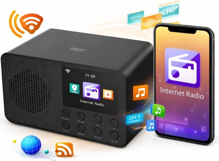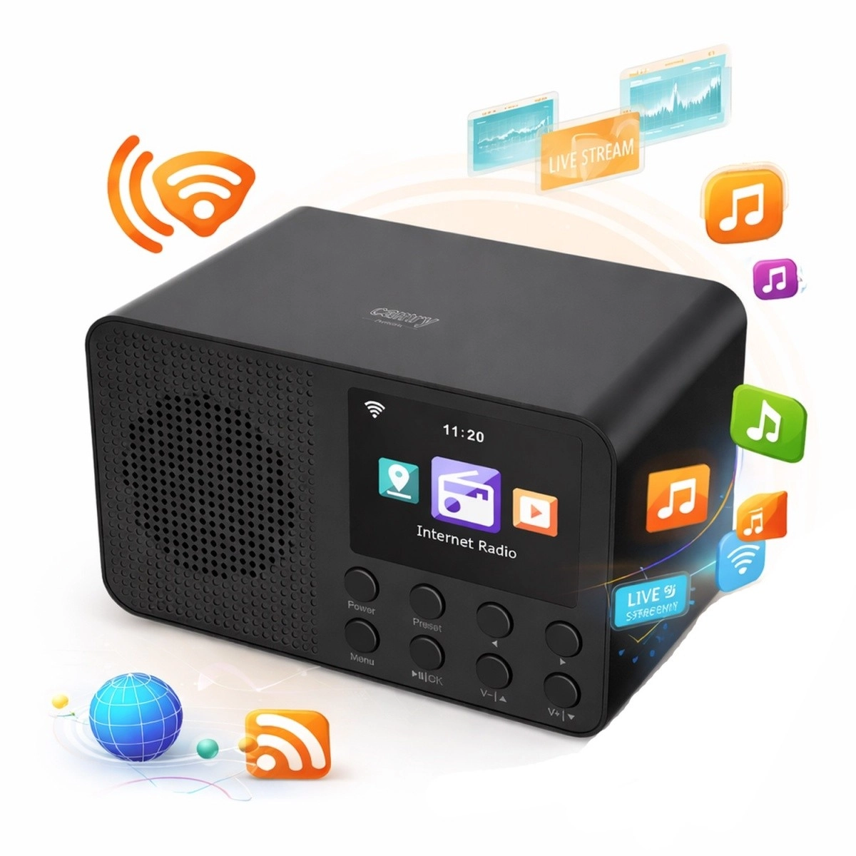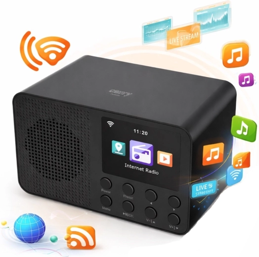 Radioul internet CAMRY îmbină controlul clasic cu lumea online. Datorită Wi‑Fi, descoperi cu ușurință mii de posturi, podcasturi și genuri din întreaga lume, în timp ce Bluetooth îți permite să redai muzică direct de pe telefon sau tabletă. Ecranul color TFT de 2,4" afișează clar numele postului, ora și data în orice condiții.