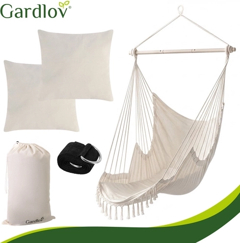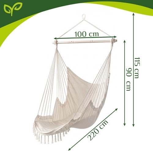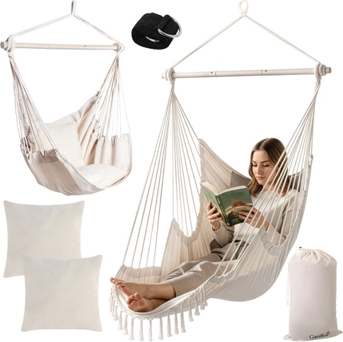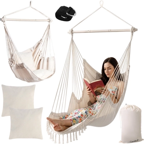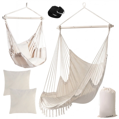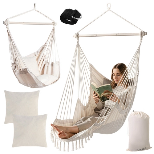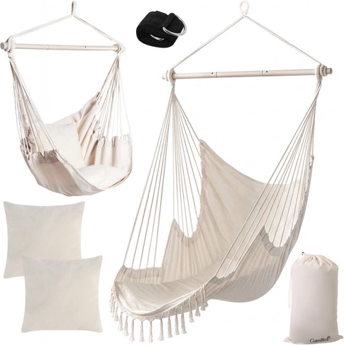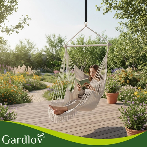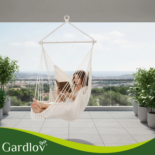 Scaunul suspendat spațios și confortabil GARDLOV transformă balconul, terasa și livingul într-o zonă cozy de relaxare. Țesătură de bumbac rezistentă 320 g/m², capacitate de încărcare 150 kg, bară stabilă pliabilă și 2 perne moi pentru legănare sigură și comodă. Construcția ușoară cu husă de transport permite mutarea facilă și întreținerea ușoară prin spălare la 30 °C.