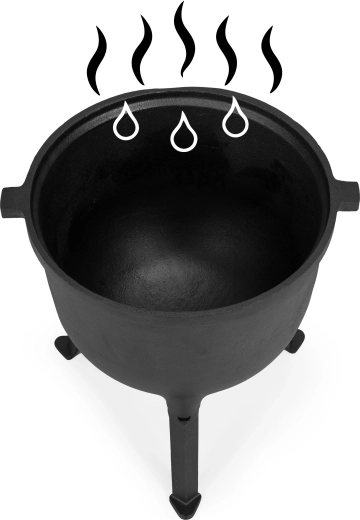 Ceaunul solid din fontă, cu suport și capac, este creat pentru gătit în aer liber. Orificiul pentru evacuarea aburului din capac ajută la reglarea vaporilor și la controlul procesului.