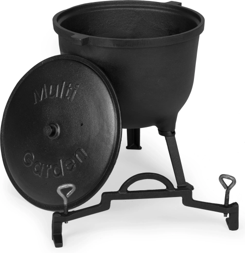 Descoperiți farmecul gătitului autentic în natură. Ceaunul din fontă MULTIGARDEN cu volum de 15 l este creat pentru reuniuni de familie, focuri de tabără și seri lungi în grădină. Fonta masivă este rezistentă la temperaturi foarte înalte, menține căldura constant și oferă rezultate suculente și aromate.