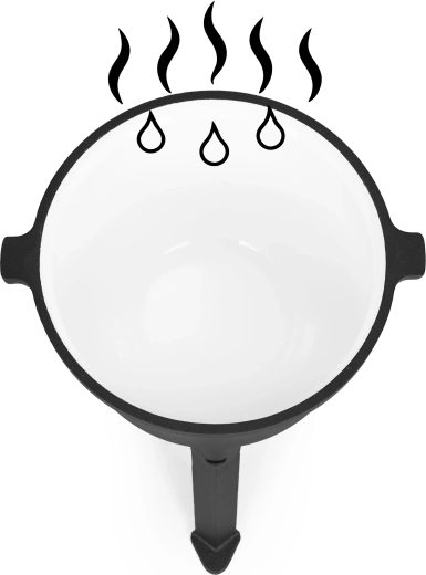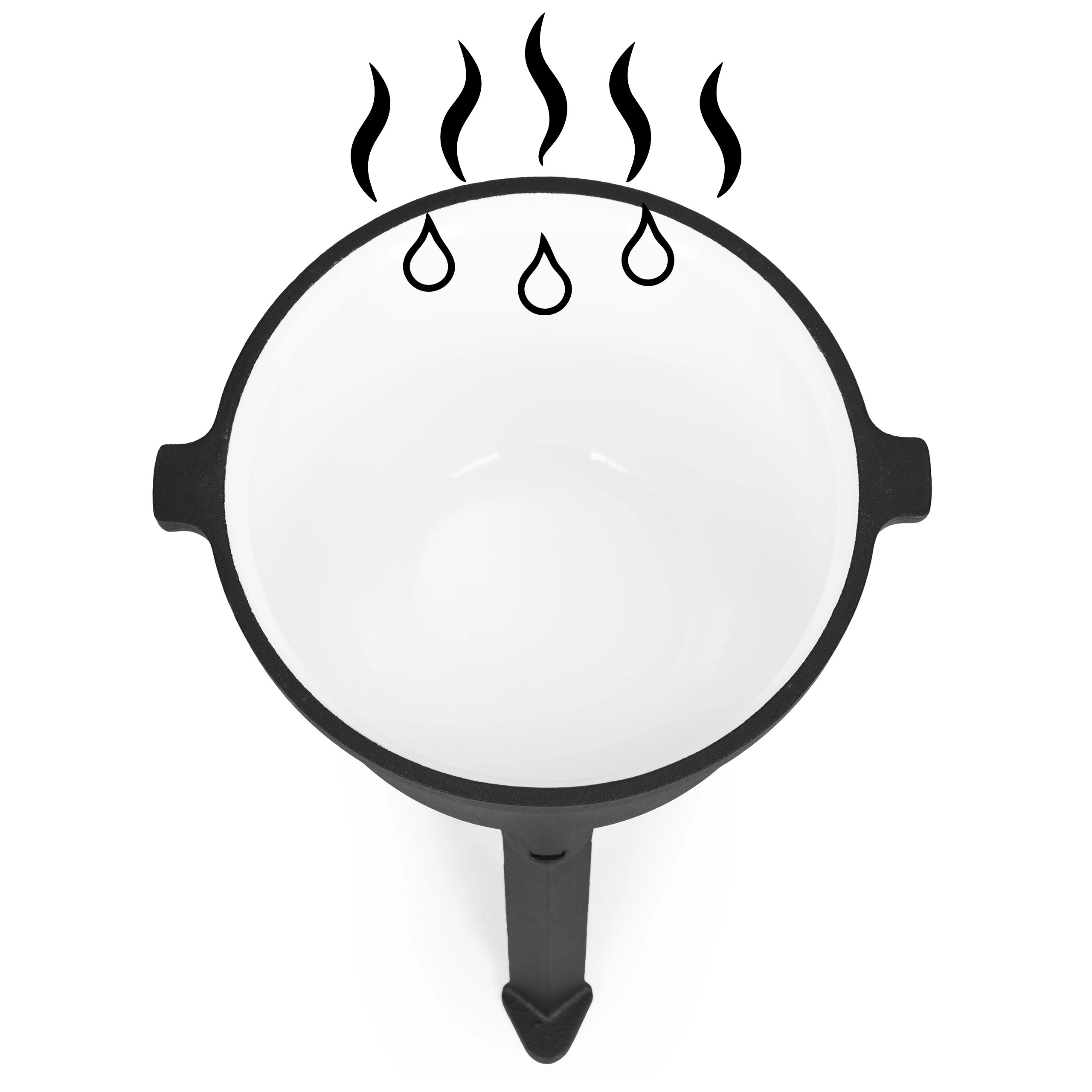 Corpul din fontă acumulează și distribuie excelent căldura pentru înăbușire lentă, fierbere și coacere. Preparatele capătă un gust profund, autentic, ca din ceaunul clasic de tabără.