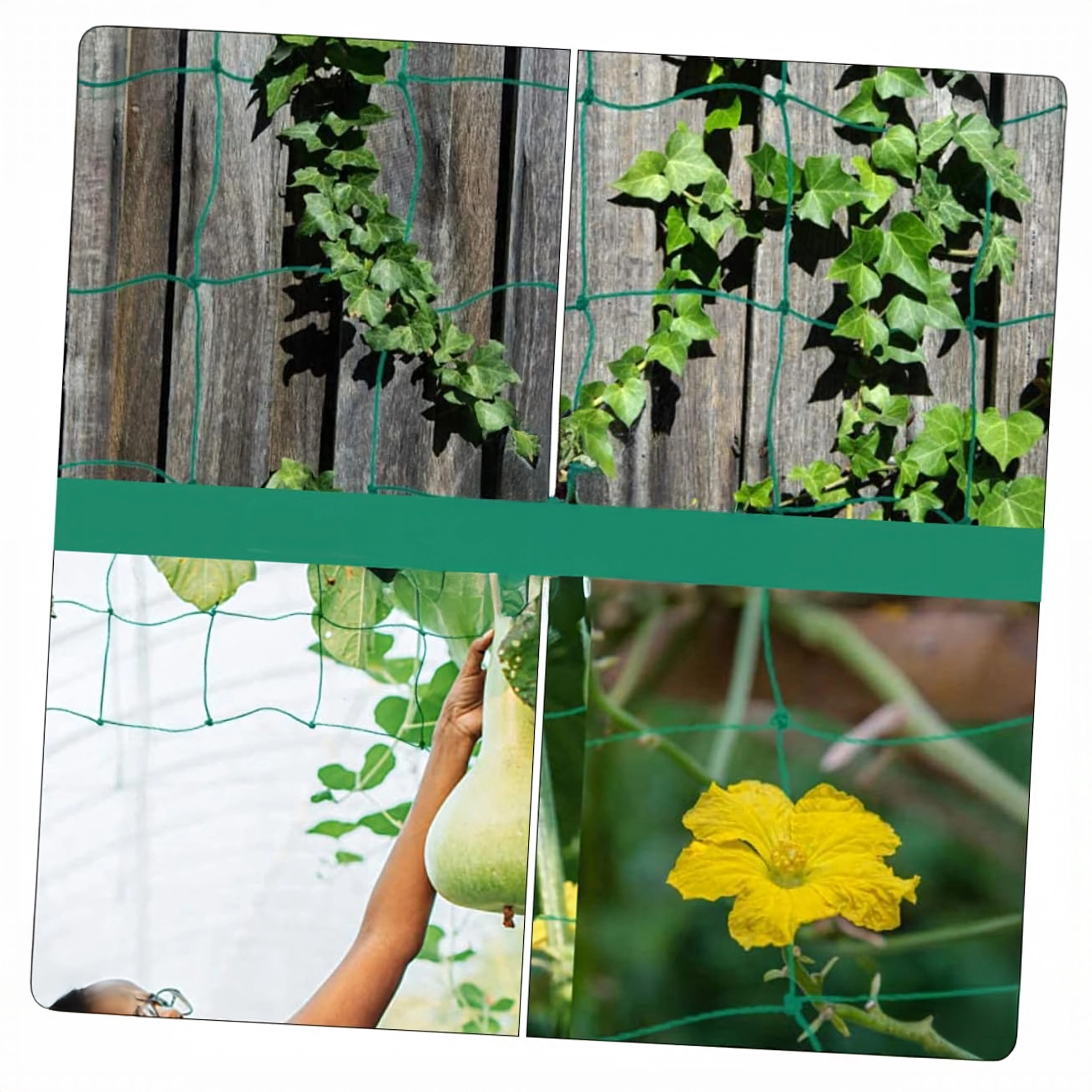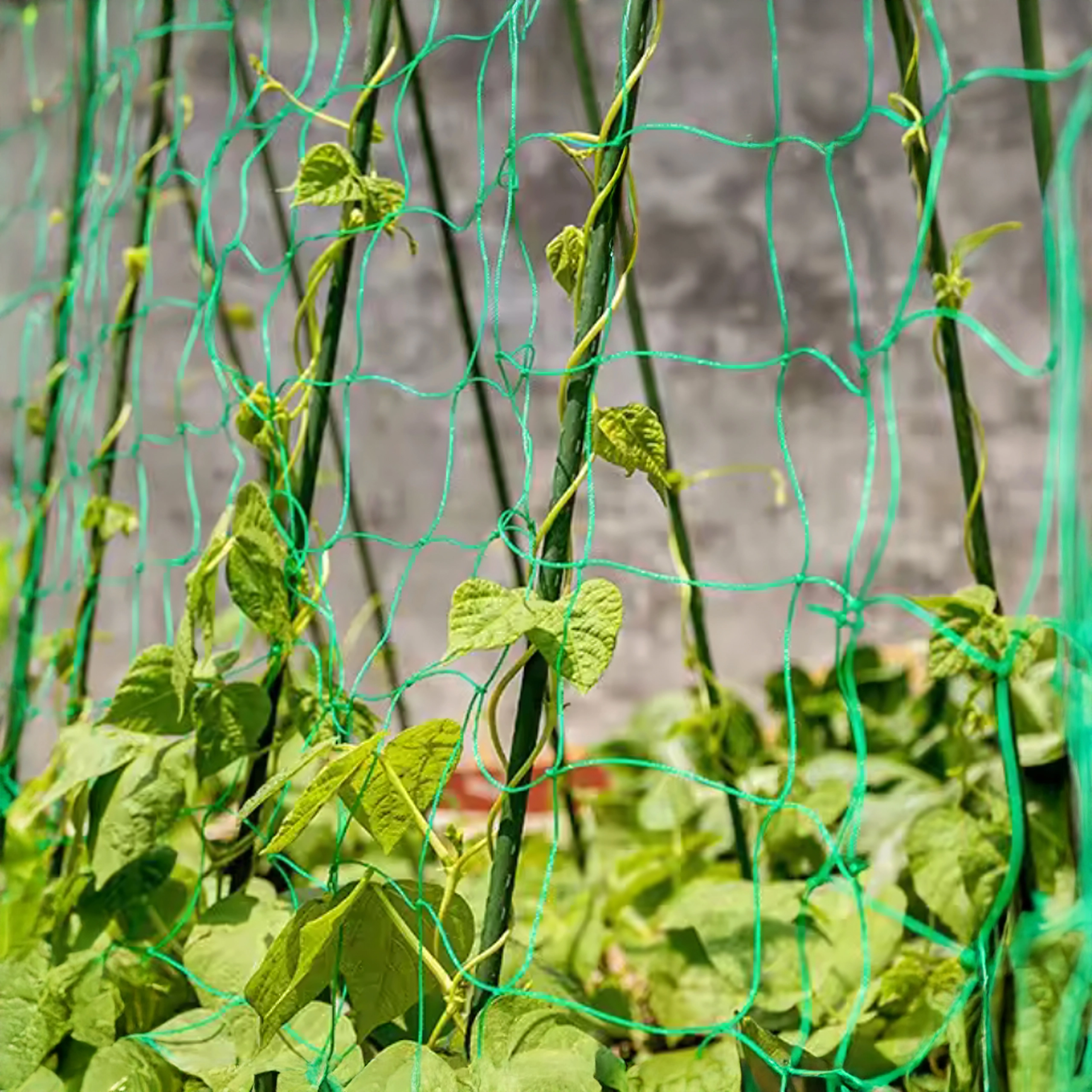 Instalarea este ușoară – plasa poate fi scurtată liber, prinsă de suporți sau de structura din solar și lăstarii pot fi legați treptat de ea. Este ideală pentru castraveți, fasole, mazăre, roșii și plante ornamentale cățărătoare. Grilajul des oferă numeroase puncte de sprijin pentru înfășurarea naturală a tulpinilor.