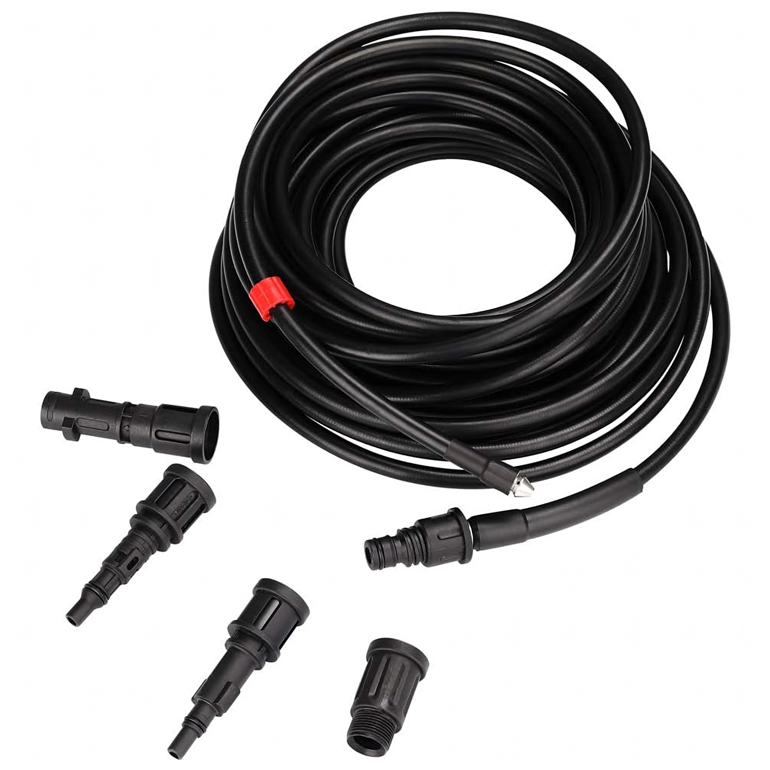 Datorită setului de adaptoare, este compatibil cu diverse mărci de aparate de spălat cu presiune. Construcția durabilă a furtunului asigură o durată lungă de viață, o conexiune etanșă fără pierderi și un debit fiabil. Se introduce ușor în țevi, oferind lucru confortabil fără a apela la servicii costisitoare.