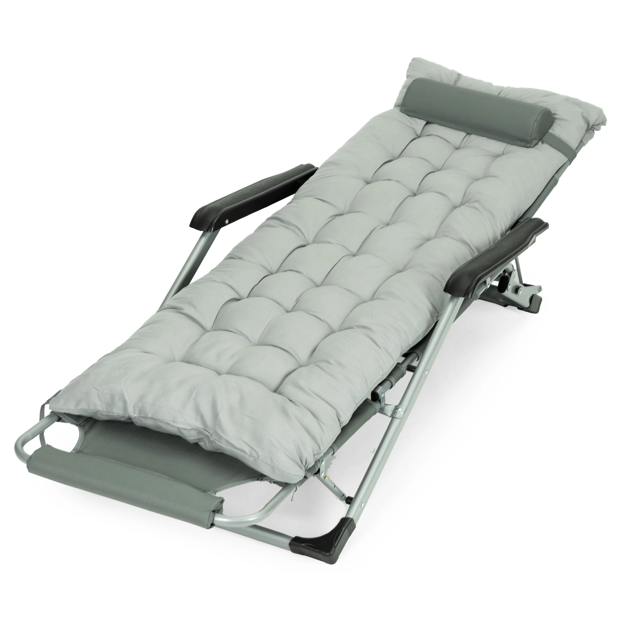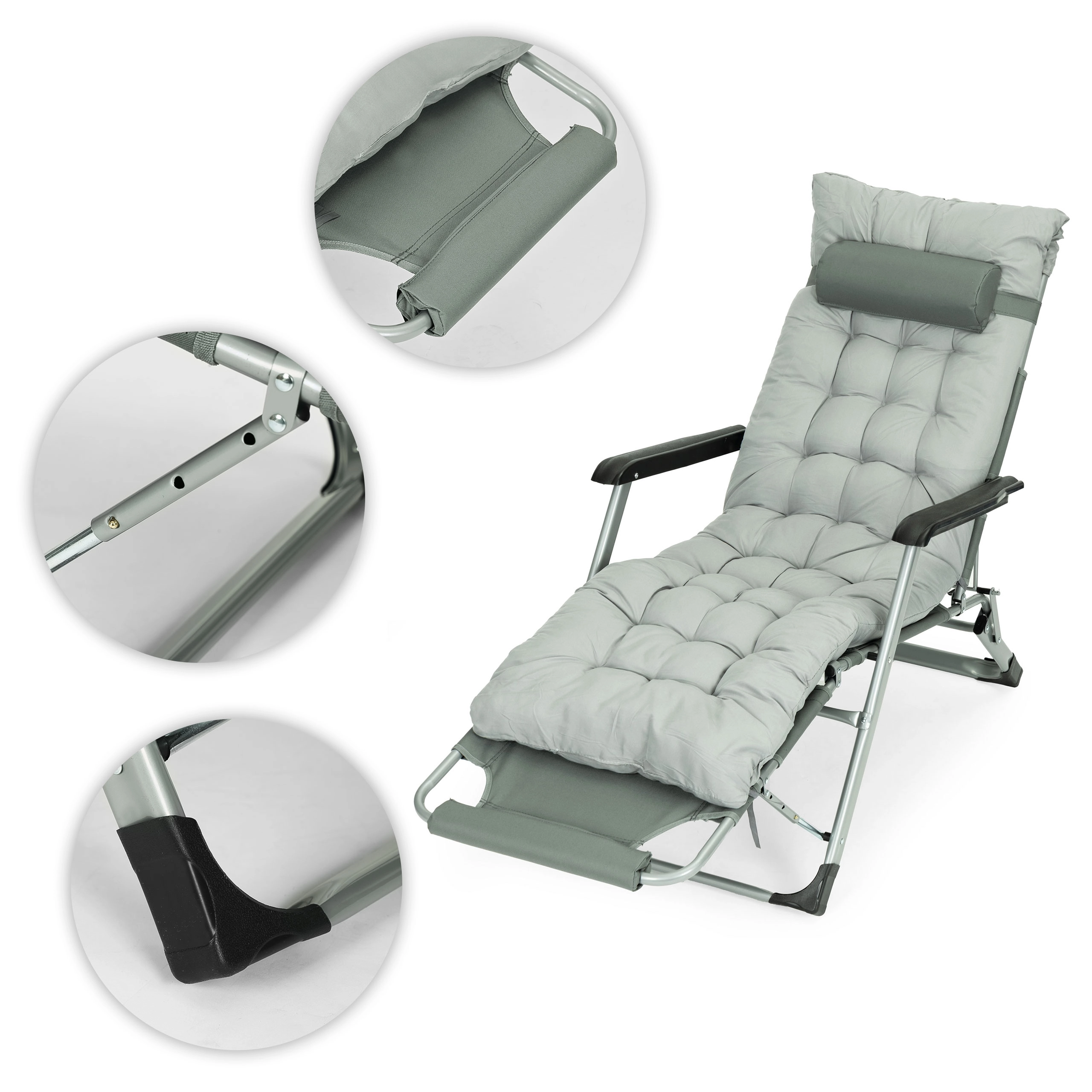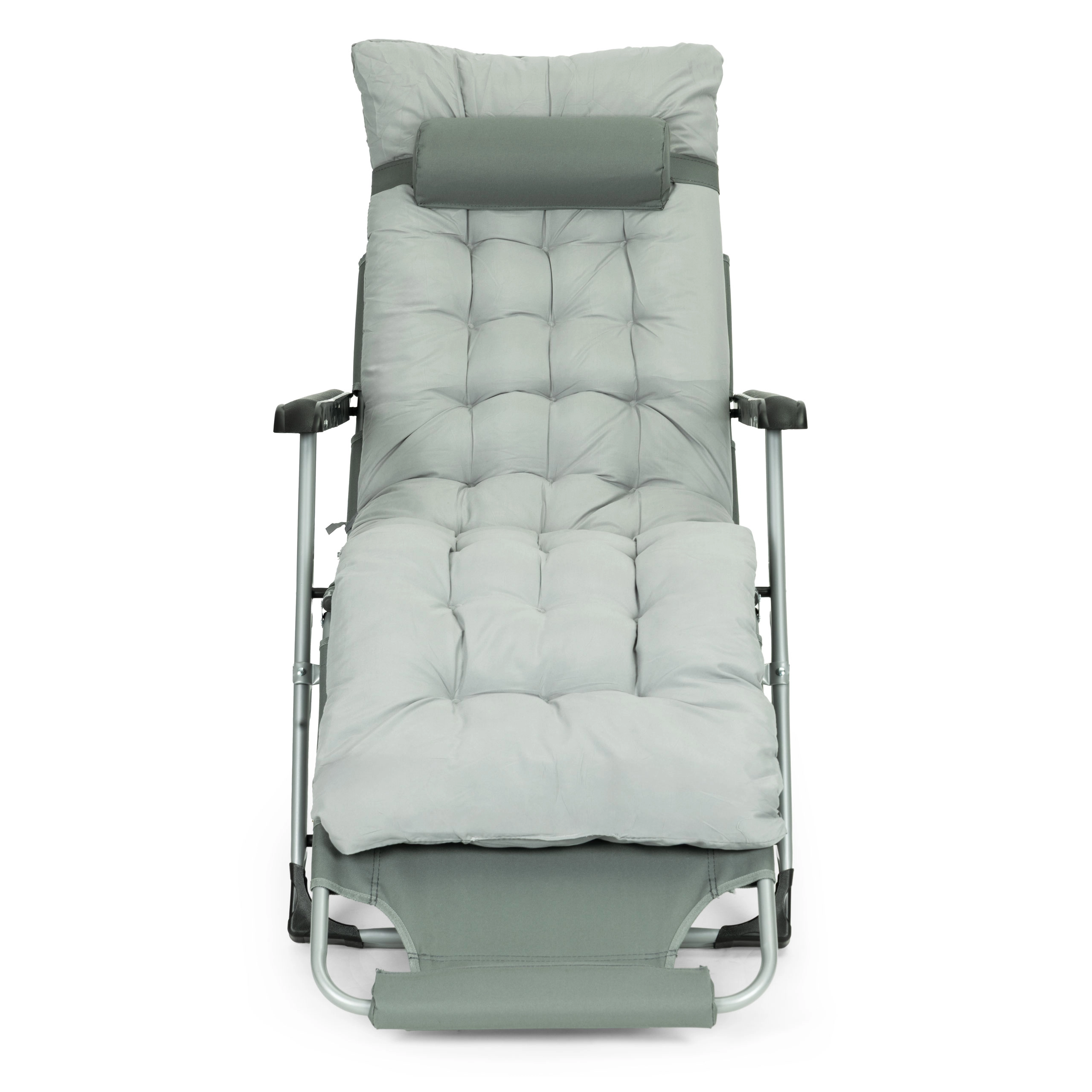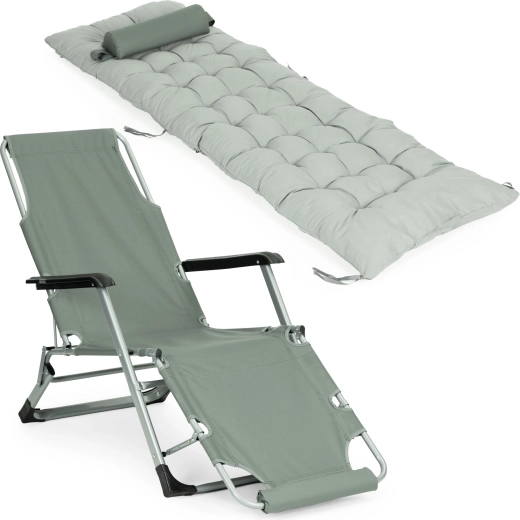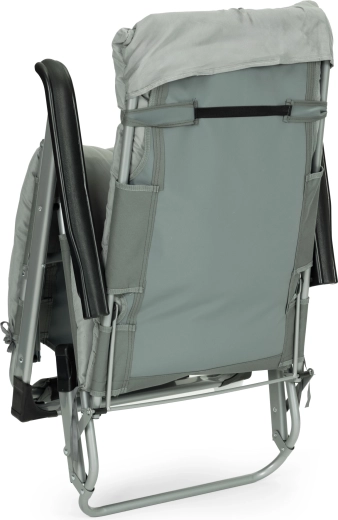 Confortul este asigurat de perna moale matlasată cu tetieră, care acoperă șezutul și spătarul. Reglarea în 3 trepte a suportului pentru picioare vă permite să găsiți poziția perfectă pentru citit, bronzat sau odihnă. Picioarele antiderapante sporesc stabilitatea și protejează podeaua împotriva zgârieturilor.