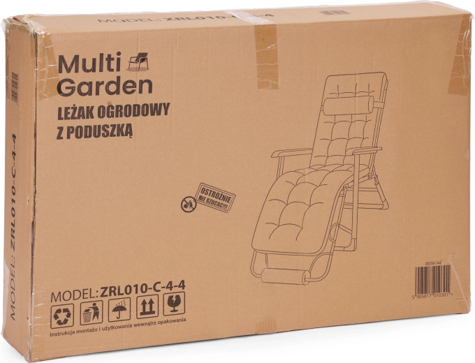 Șezlongul MultiGarden este ideal pentru grădină, terasă, balcon și plajă. Construcția stabilă din oțel cu acoperire pulbere rezistă la coroziune, iar țesătura robustă Oxford 600D se remarcă prin rezistență crescută la abraziune și rezistență la umezeală. Datorită mecanismului pliabil, șezlongul se transportă și se depozitează ușor – ocupă foarte puțin spațiu.