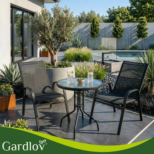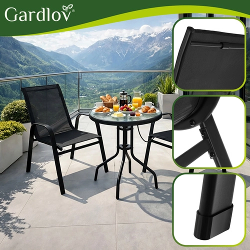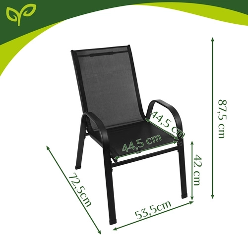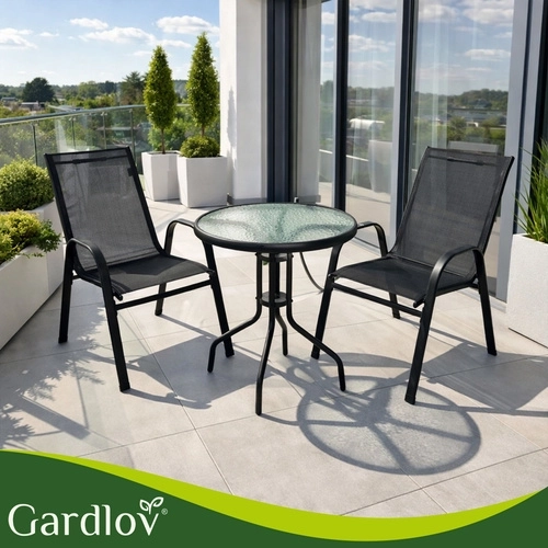 Bucură-te de cafeaua de dimineață pe balcon sau de serile pe terasă în confort maxim. Setul de scaune de grădină GARDLOV (2 bucăți) combină o structură stabilă din fier cu vopsea pulbere, rezistență la UV și apă și un șezut confortabil, respirabil, din PVC. Scaunele pot fi stivuite pentru economisirea spațiului, se curăță ușor și montajul se face în 10 minute datorită instrucțiunilor vizuale clare și videoclipului.