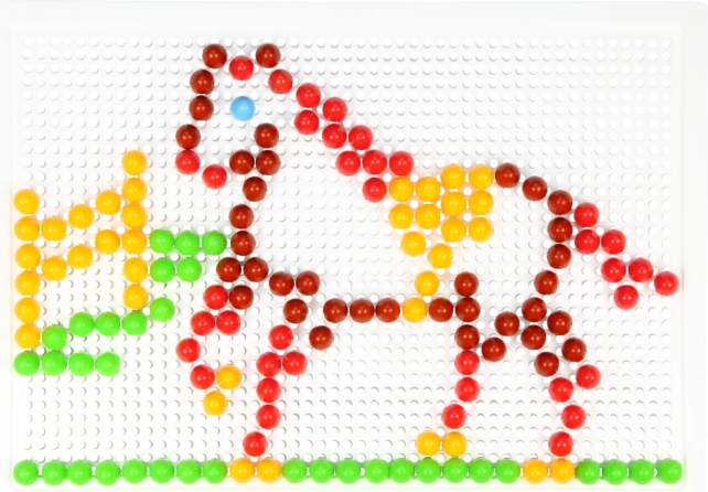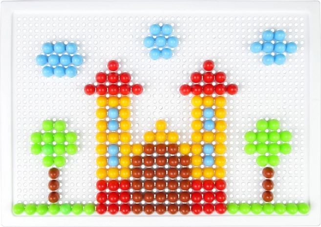 Acest mozaic colorat de la LENA este o jucărie educativă ideală pentru preșcolari și școlari. Copiii pot introduce cu ușurință țărușii din plastic în placă și pot crea propriile motive – de la animale până la scene fanteziste. Jocul dezvoltă coordonarea mână–ochi, răbdarea și concentrarea.