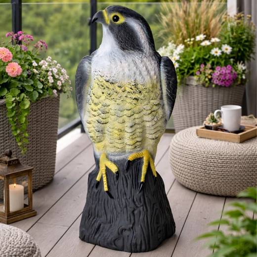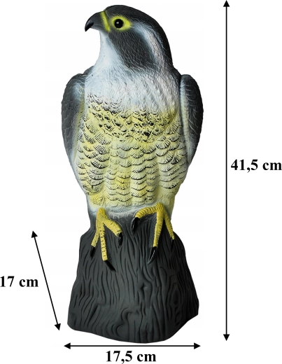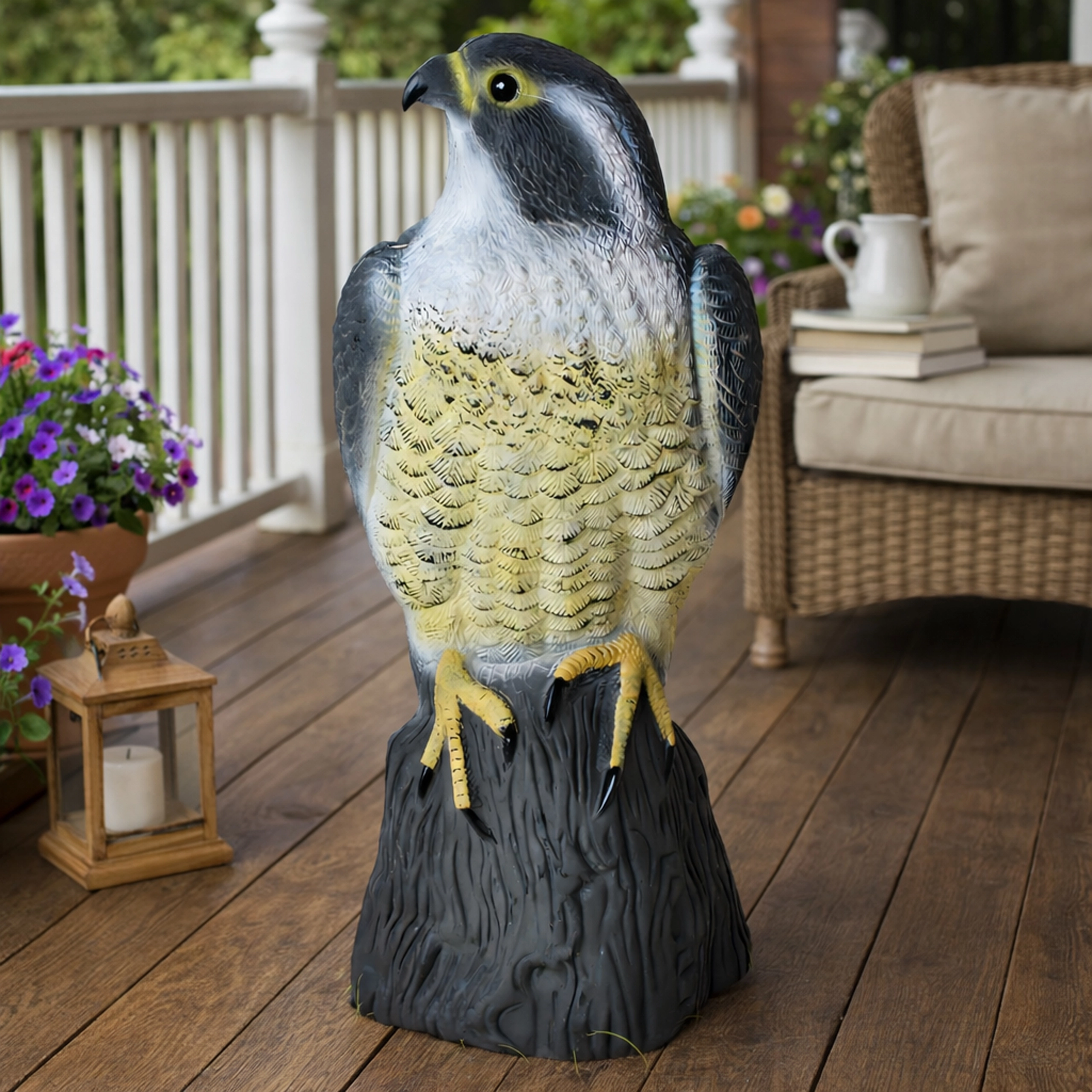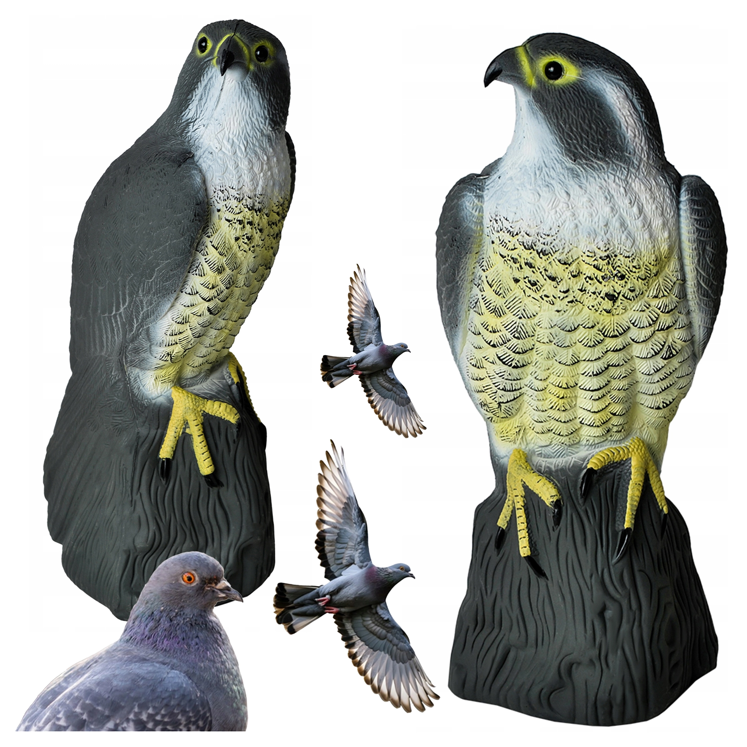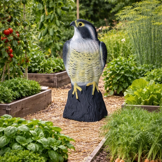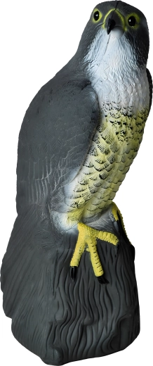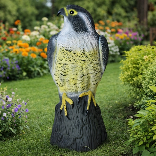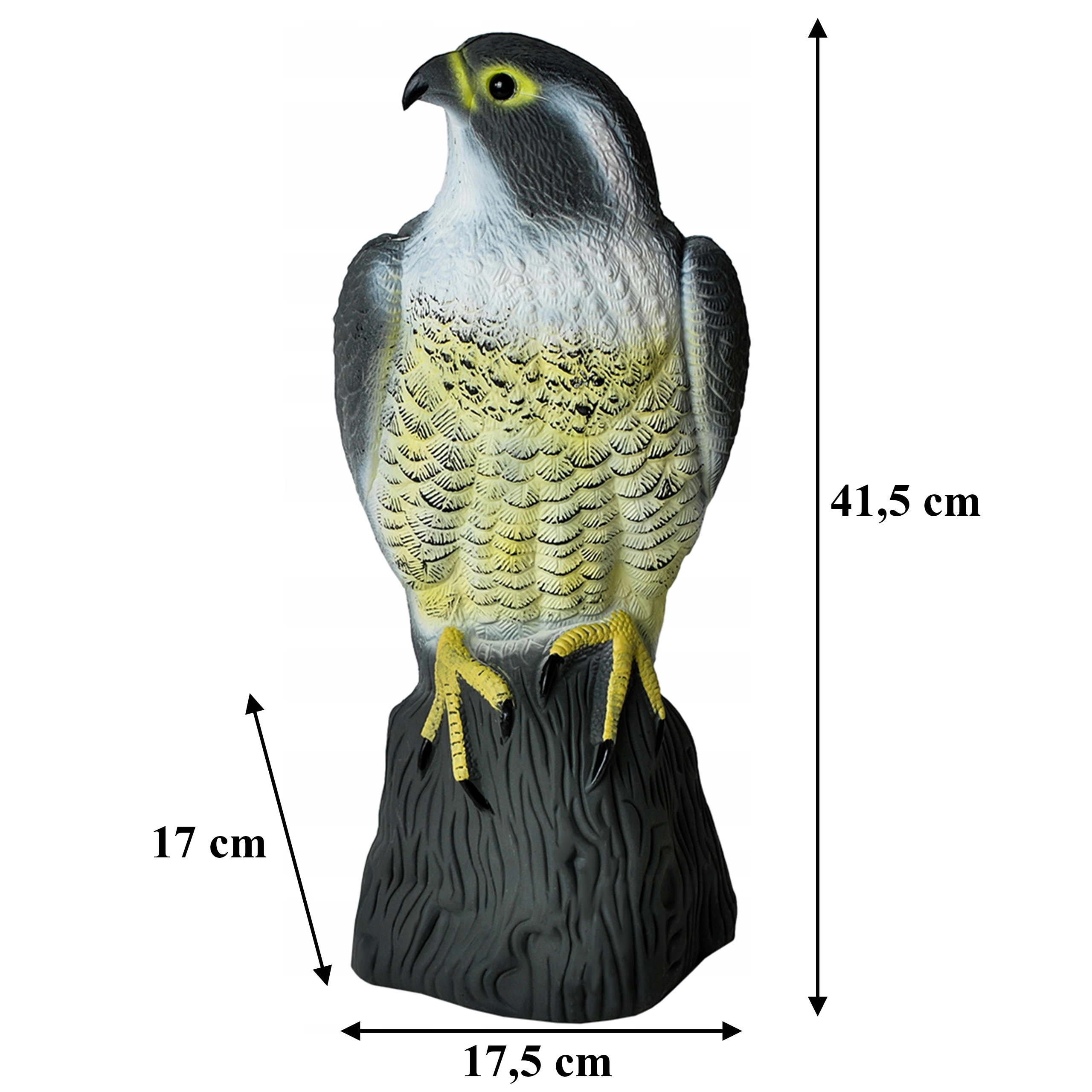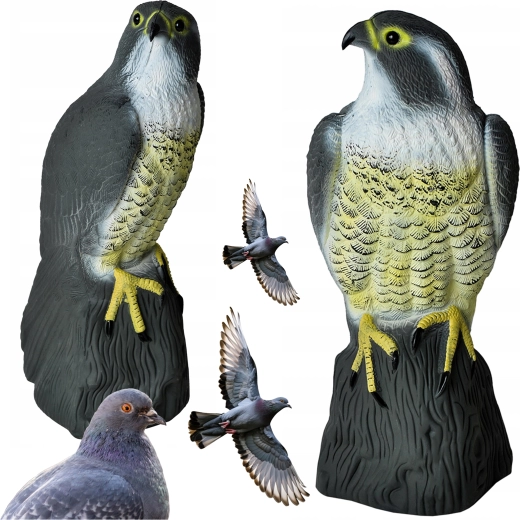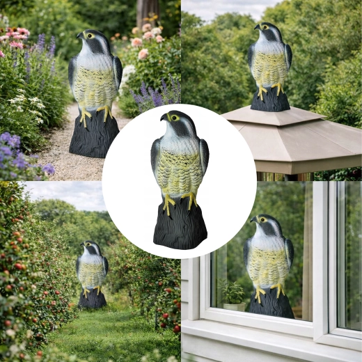 Macheta realistă de șoim alungă eficient porumbeii, graurii și păsările mici de pe balcoane, din grădini, livezi și terase. Datorită culorilor fidele și detaliilor atent lucrate, are un aspect amenințător și natural, descurajând păsările să se așeze și să deterioreze recolta. Este realizată din plastic rezistent la intemperii, are bază stabilă și se montează ușor fără unelte. Ideală ca protecție ecologică și silențioasă, fără chimicale.