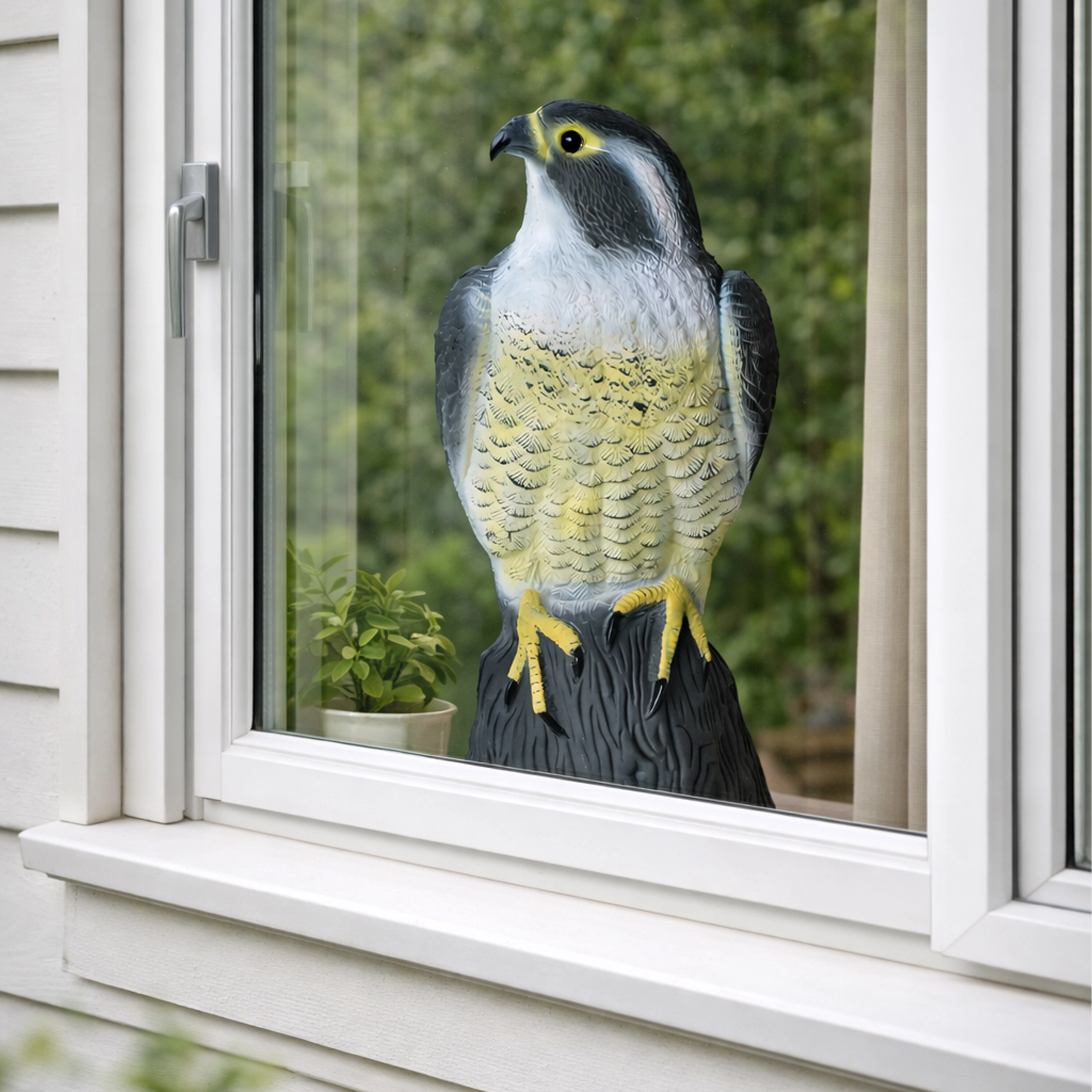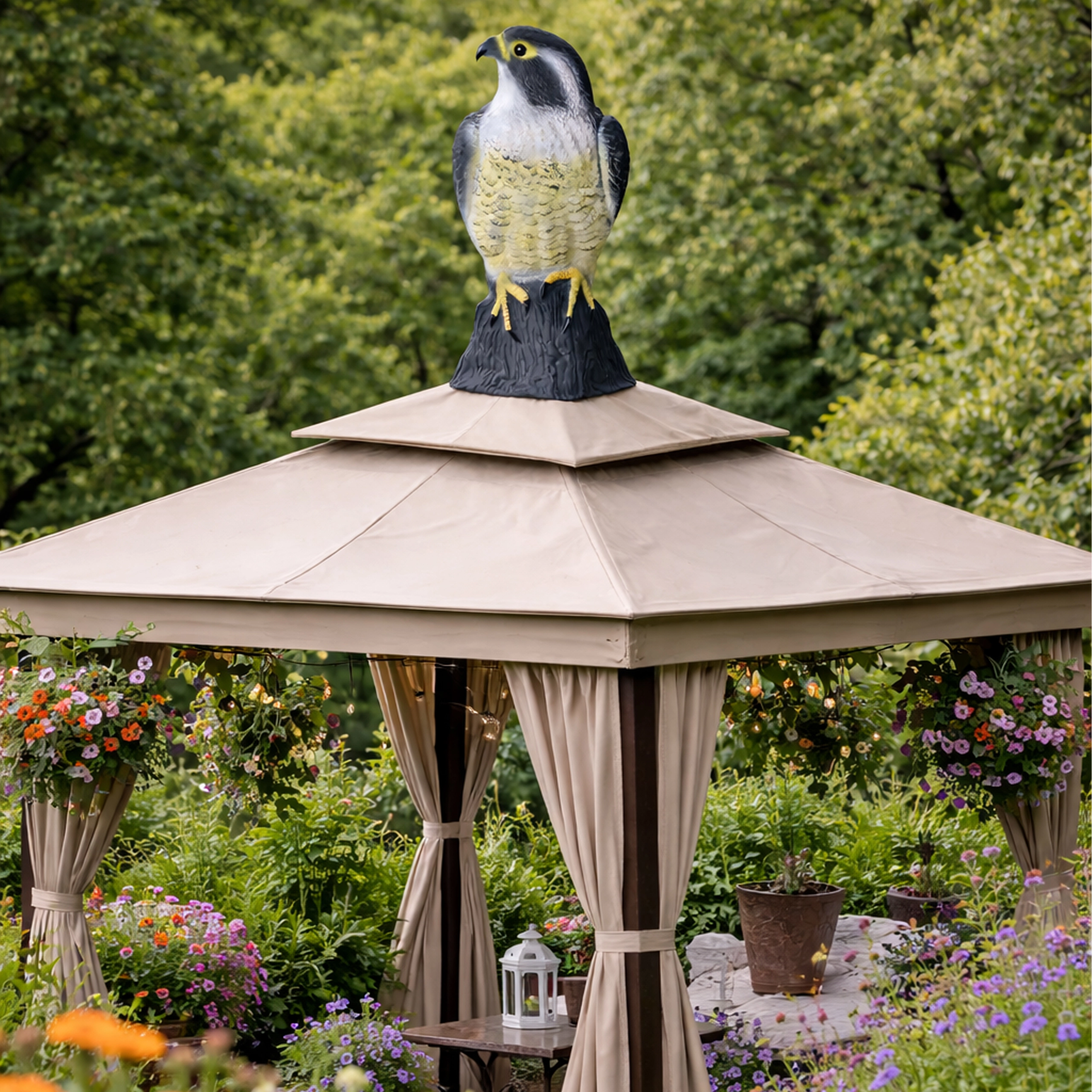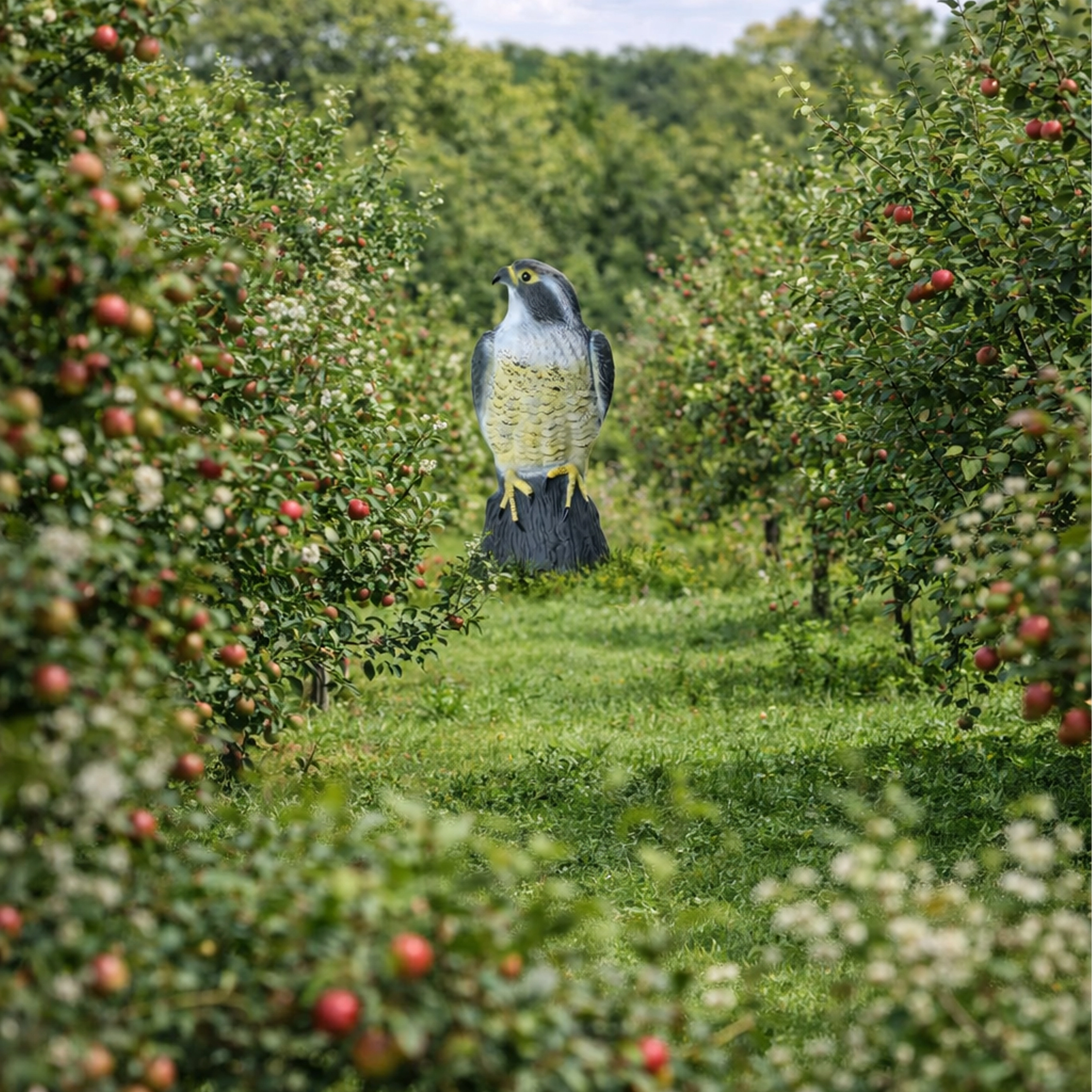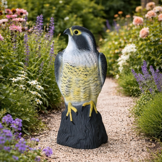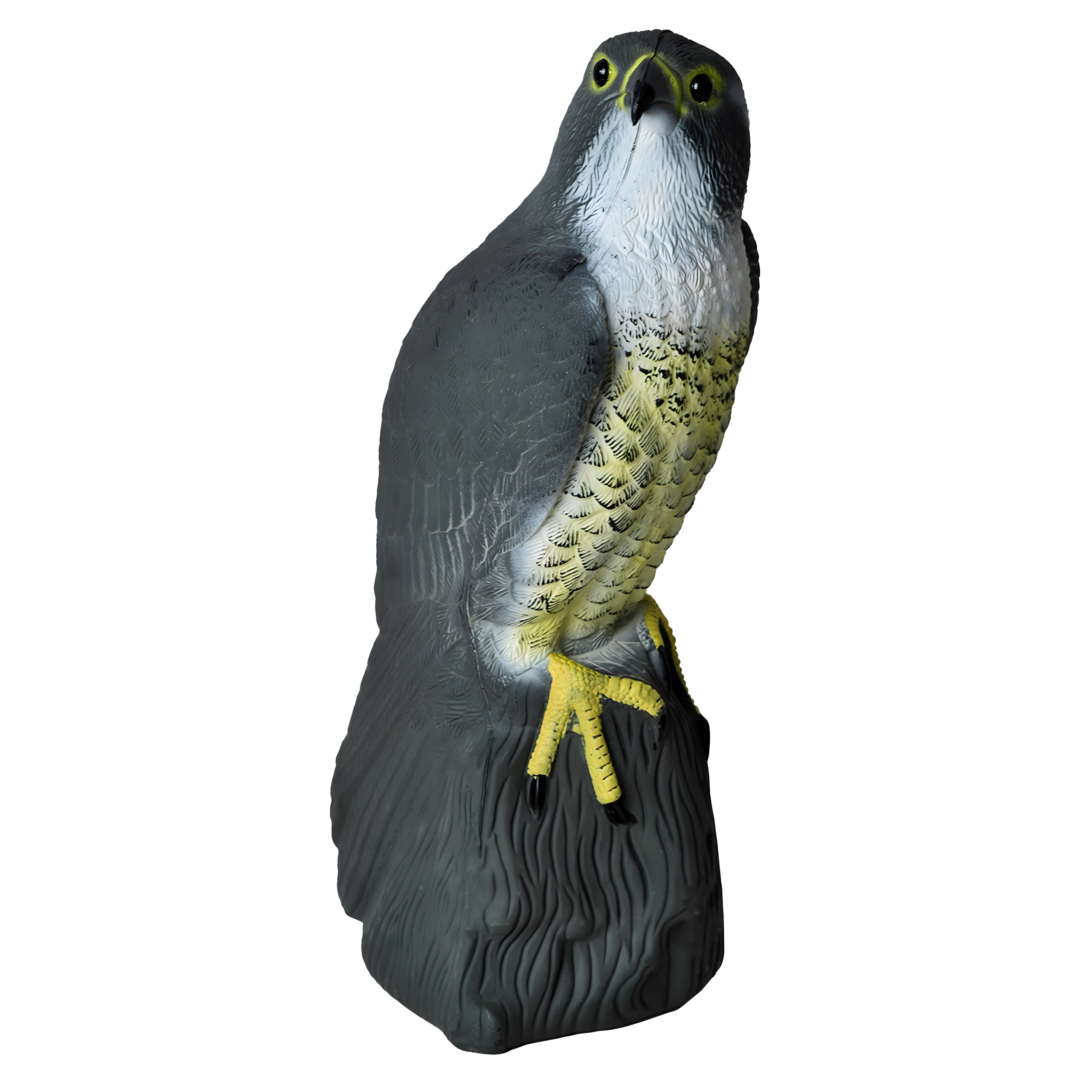 Macheta realistă de șoim alungă eficient porumbeii, graurii și păsările mici de pe balcoane, din grădini, livezi și terase. Datorită culorilor fidele și detaliilor atent lucrate, are un aspect amenințător și natural, descurajând păsările să se așeze și să deterioreze recolta. Este realizată din plastic rezistent la intemperii, are bază stabilă și se montează ușor fără unelte. Ideală ca protecție ecologică și silențioasă, fără chimicale.