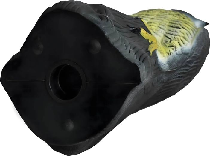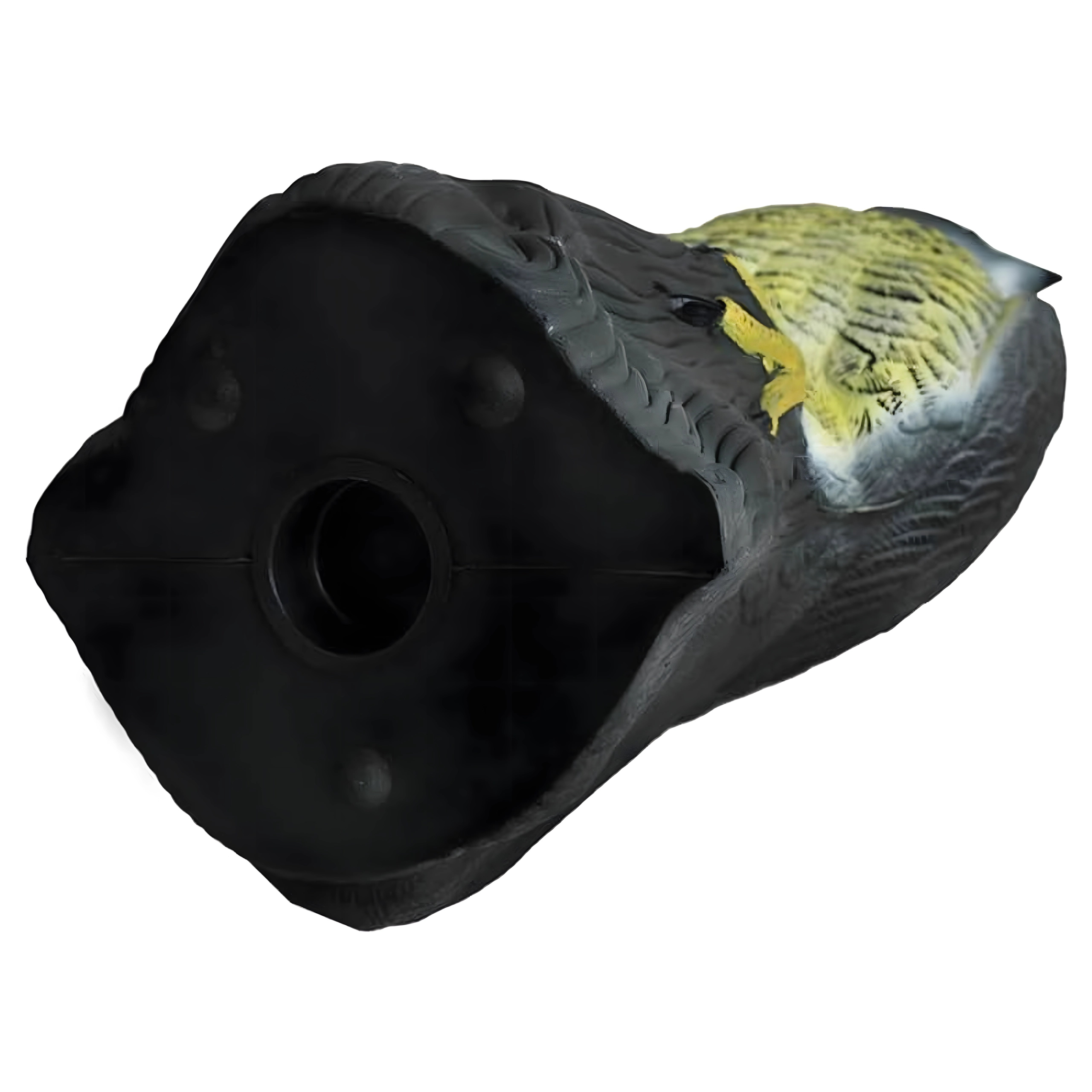 Macheta este realizată din plastic durabil, potrivit pentru utilizare în aer liber pe tot parcursul anului. Baza stabilă permite așezarea facilă pe suprafețe plane (pervazuri, balustrade, acoperișuri, terase, sere, straturi). Pentru eficiență maximă, mutați-o din când în când în alt loc, pentru ca păsările să nu se obișnuiască cu prezența ei.