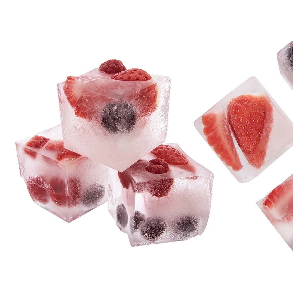 Șase cuburi mari de 5 × 5 × 5 cm se topesc mai lent, astfel încât băutura ta rămâne rece mai mult timp fără diluare inutilă a gustului.