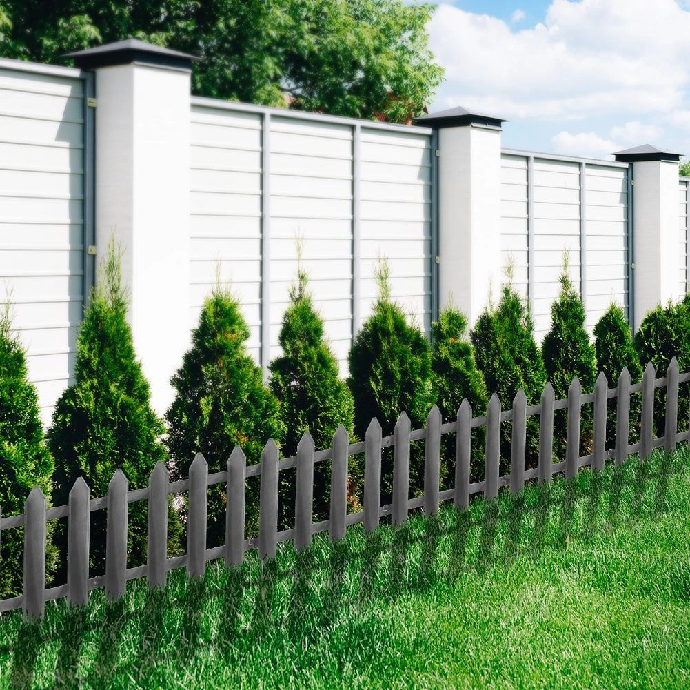 Creați margini îngrijite pentru gazon și straturi cu acest gard modular de grădină în nuanța modernă grafit. Elementele se conectează simplu în linii drepte sau arcuite, astfel delimitați cu ușurință alei, straturi de flori sau zone protejate pentru plante și decorațiuni.