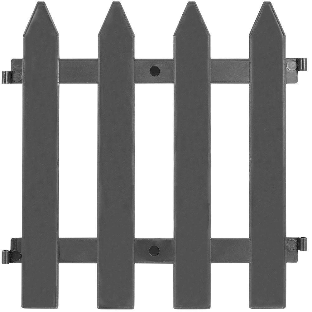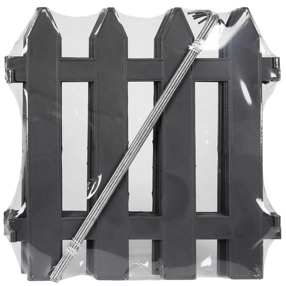 Un gard decorativ de grădină practic, în elegantul colorit grafit, creează borduri curate pentru straturi și protejează plantele. Setul conține 10 panouri de 30 × 30 cm, iar lungimea totală după asamblare este de 300 cm. Montaj ușor, rezistență la raze UV, îngheț și ploaie și durată lungă de viață datorită plasticului de calitate și ancorelor metalice.
