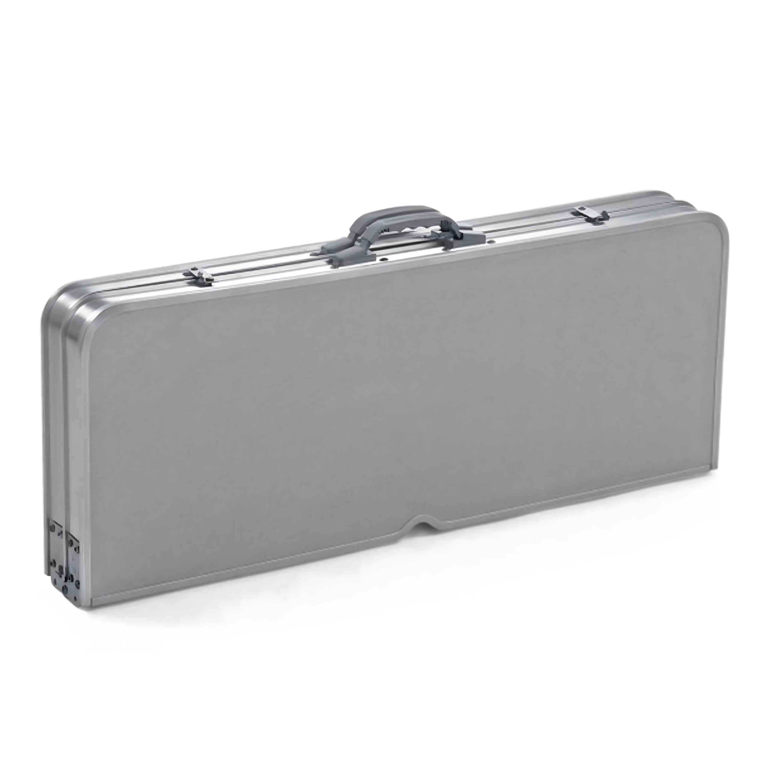 După pliere, întregul set devine un geamantan plat cu mâner. Structura ușoară din aluminiu facilitează transportul și depozitarea.