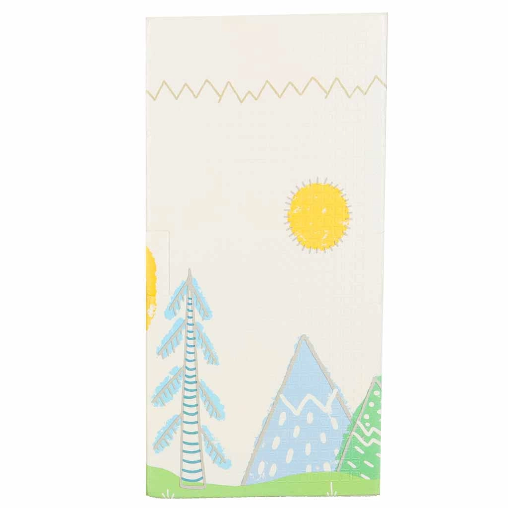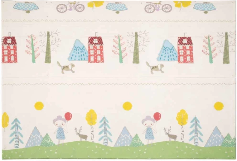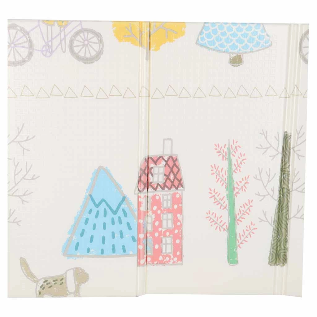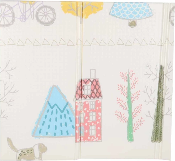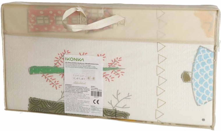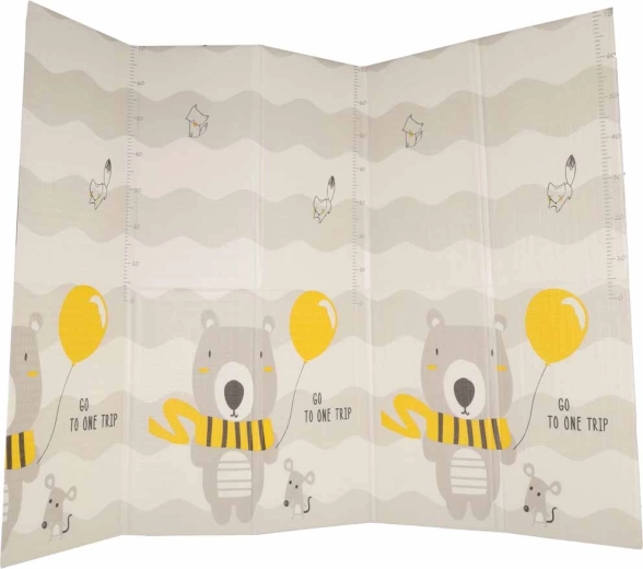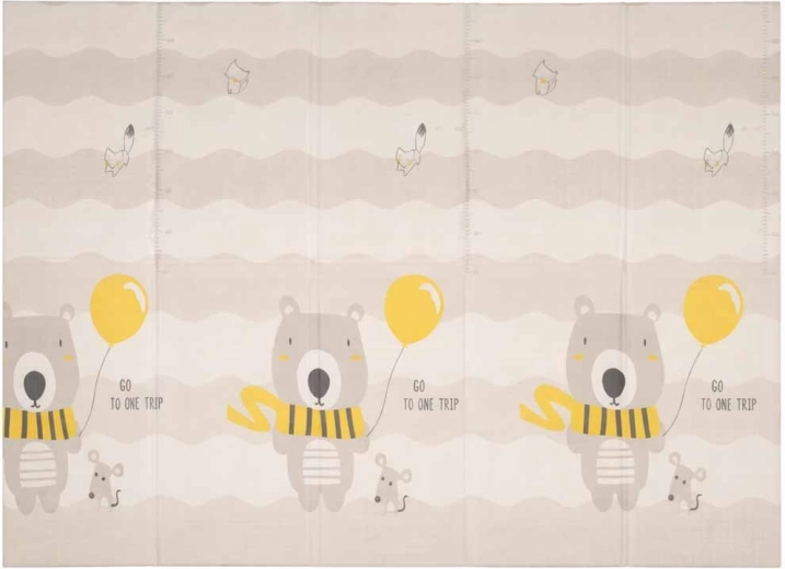 Această saltea pliabilă mare din spumă, 150 × 200 cm, susține în mod natural dezvoltarea motricității grosiere – invită la rostogolire, stat în șezut și primii pași. Motivele educaționale colorate cu animăluțe captivează copiii și îi încurajează să se joace mai mult. Designul minimalist în stil modern se potrivește perfect atât în camera copilului, cât și în living.