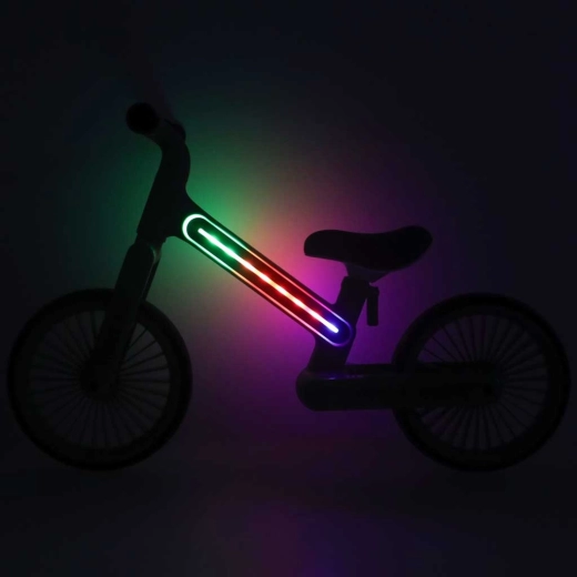 Bicicletă de echilibru stilată pentru copii cu cadru LED iluminat și până la 20 de moduri de iluminare pentru vizibilitate sporită și distracție. Construcție ușoară din nylon, roți EVA de 12" fără întreținere și șea reglabilă pentru o plimbare confortabilă și sigură. Prima bicicletă ideală pentru antrenamentul natural al echilibrului și coordonării fără roți ajutătoare.