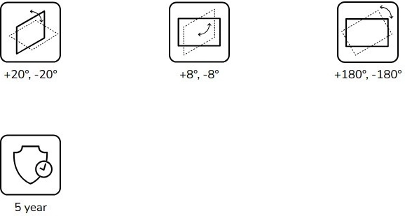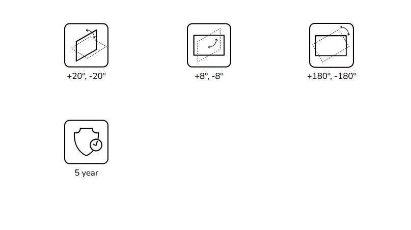 Pentru o instalare facilă și utilizare zilnică, suportul oferă un set complet de reglaje: înclinare +20°/−20° pentru corecția înălțimii imaginii, rotație completă 360° pentru orientarea ideală și micro-ajustare a orizontului în intervalul +8°/−8°, asigurând o imagine dreaptă și perfect centrată.