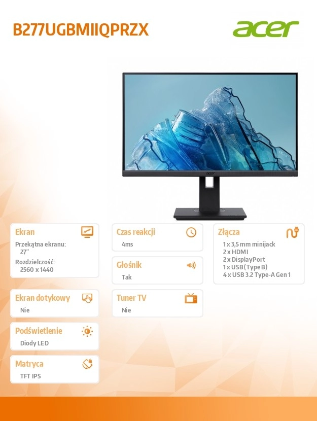 Bucurați-vă de imagini fluide pe un monitor de 27" cu rezoluție QHD și tehnologie IPS. Datorită ratei de reîmprospătare 120 Hz, unghiurilor largi de vizualizare și conectivității bogate 2× HDMI și DisplayPort, este ideal pentru muncă, divertisment și multimedia. Suportul ergonomic cu reglare pe înălțime și înclinare și gestionarea practică a cablurilor asigură confort zilnic în utilizare.