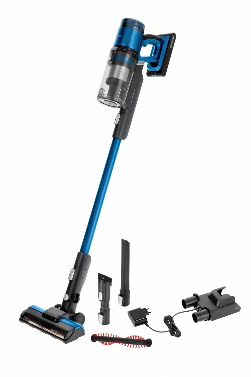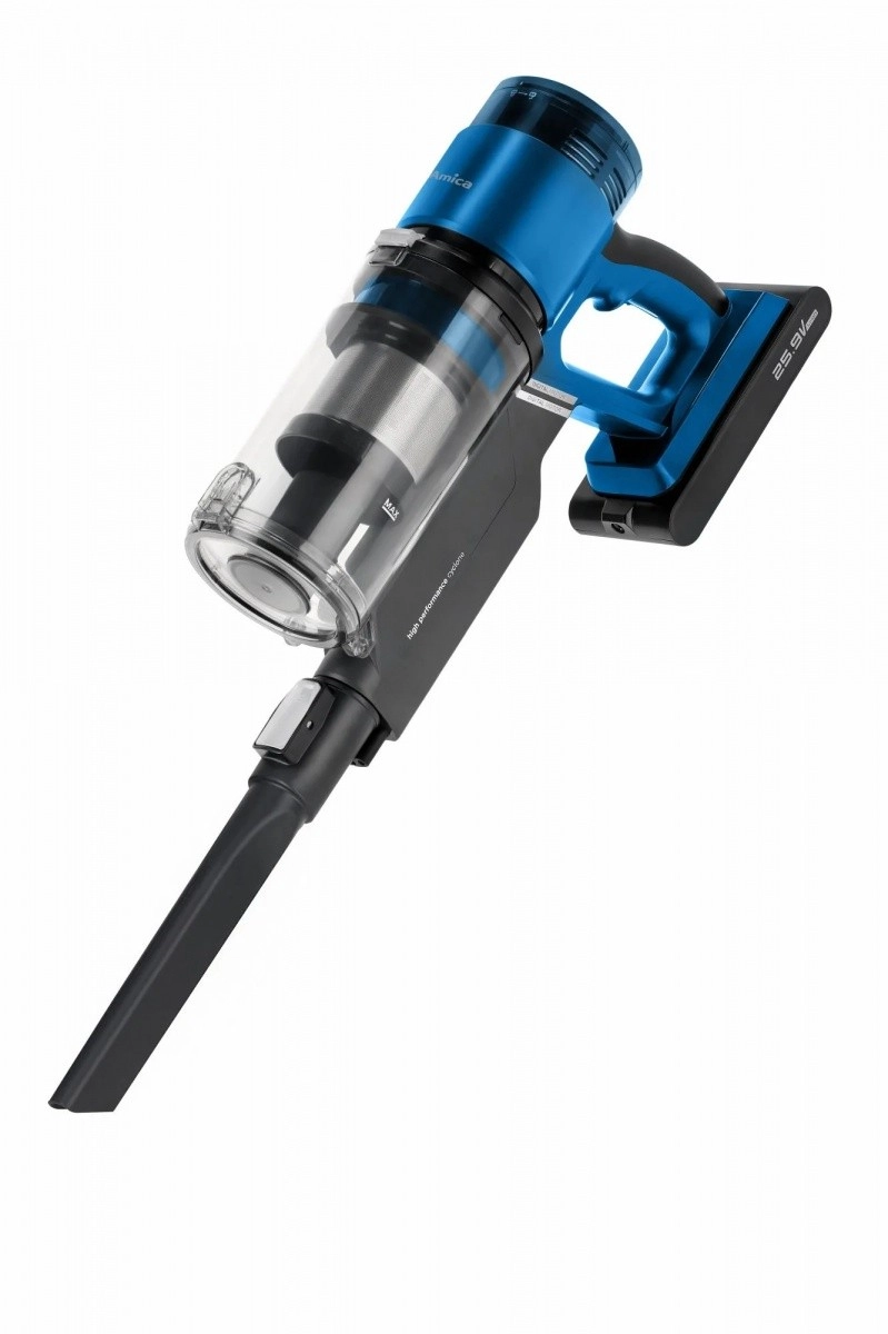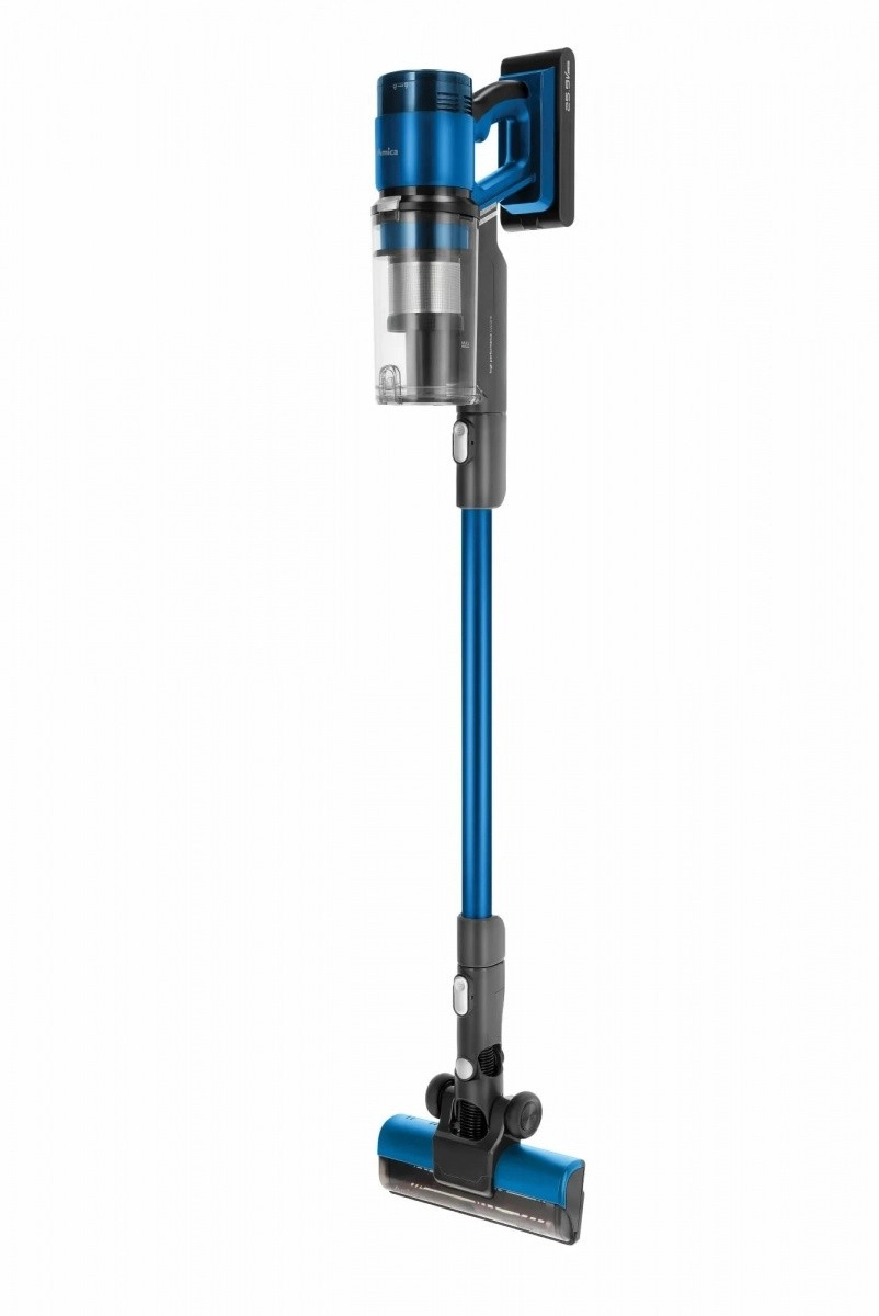 Aspiratorul vertical VMB Zonda, ușor și performant, îmbină confortul 2 în 1 cu unitate de mână, baterie Li‑ion interschimbabilă, până la 50 de minute de funcționare și perie motorizată cu LED pentru curățare precisă a pardoselilor dure și a covoarelor.