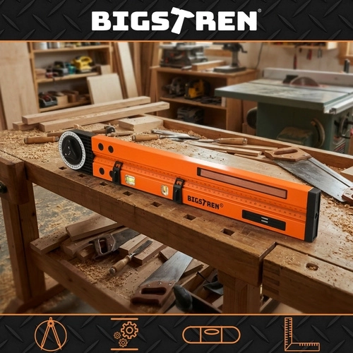 Raportorul reglabil BIGSTREN 3-în-1 îmbină trei funcții esențiale: măsurarea și transferul precis al unghiurilor, controlul planeității cu ajutorul a două nivele și trasarea practică a cercurilor/arcelor cu suport pentru creion. Datorită intervalului 0–270°, gestionați cu ușurință tăieturi oblice, montarea plintelor, lucrări de faianțare și tâmplărie, precum și operațiuni de montaj pe șantier.