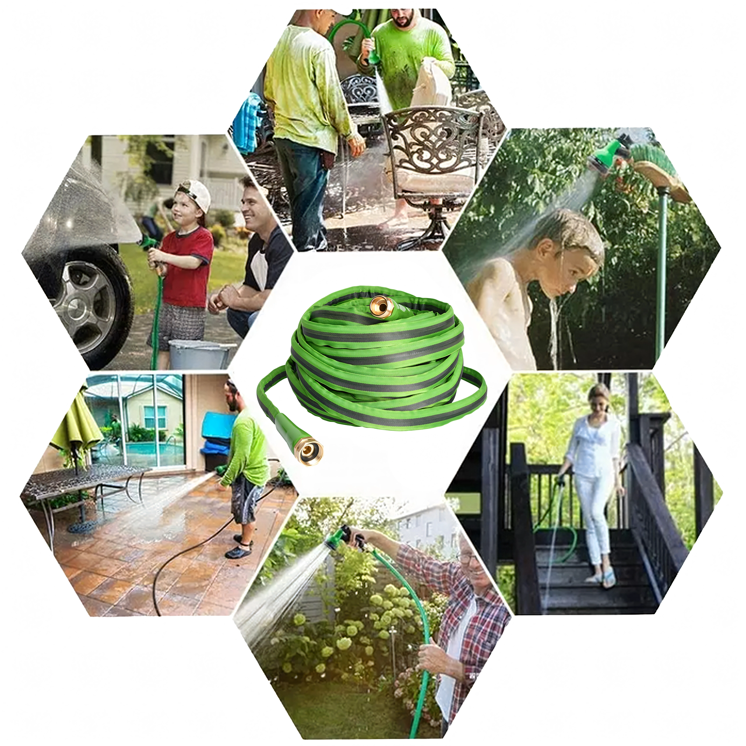 Datorită mantalei întărite și rezistenței la răsucire și încurcare, furtunul este ușor de folosit și de depozitat. Este compatibil cu aspersoare obișnuite, pistoale de stropit și robinete de grădină cu racord de 1/2".