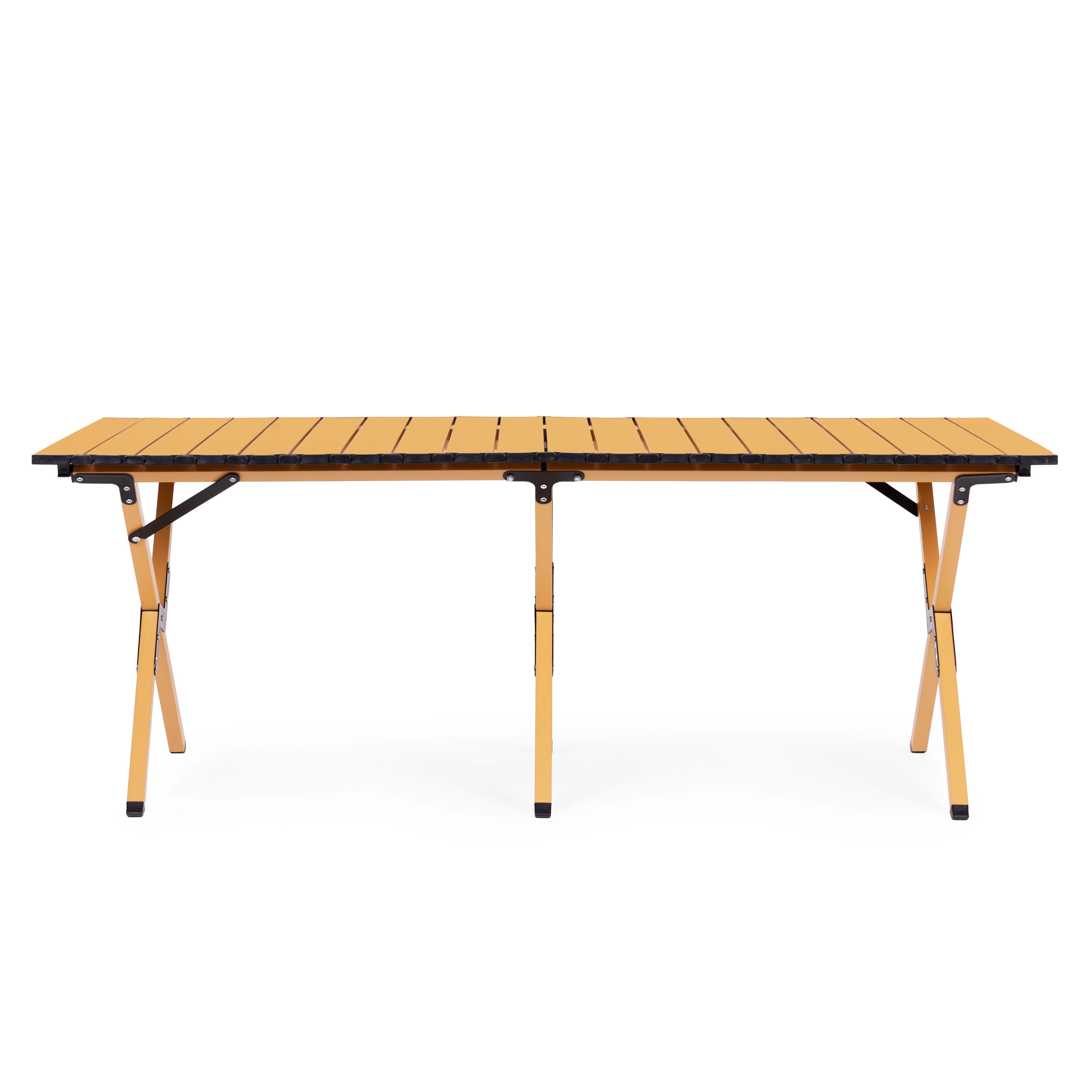 Bucurați-vă de confort oriunde în aer liber – această masă pliabilă oferă o suprafață stabilă pentru mâncare, băuturi și accesorii de camping. Datorită ramei robuste din oțel carbon și blatului rulabil din lamele, oferă stabilitate excelentă, întreținere ușoară și asamblare rapidă.