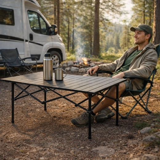 Construcția pliabilă economisește spațiu, iar cu husa inclusă poți transporta masa cu ușurință la camping, picnic sau pe plajă.