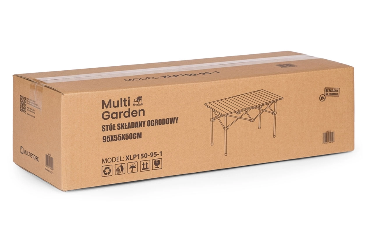 Masa are un blat rulabil din lamele, care creează o suprafață stabilă pentru servire și pregătire. Cadrul solid din oțel carbon cu întărire în cruce asigură stabilitatea, iar picioarele antiderapante oferă aderență sigură pe iarbă, terasă sau pământ. Montajul este intuitiv și complet fără unelte – este suficient să desfaci cadrul și să fixezi blatul cu ajutorul cleștilor de blocare.