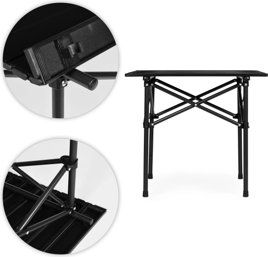Bucurați-vă de confort în aer liber cu o măsuță compactă și fiabilă, pe care o pliați și o transportați cu ușurință. Blatul rulabil din lamele creează o suprafață stabilă pentru mâncare, băuturi și accesorii, în timp ce întărirea în cruce a cadrului din oțel carbon asigură rezistență și stabilitate pe iarbă, terasă sau sol de pădure.