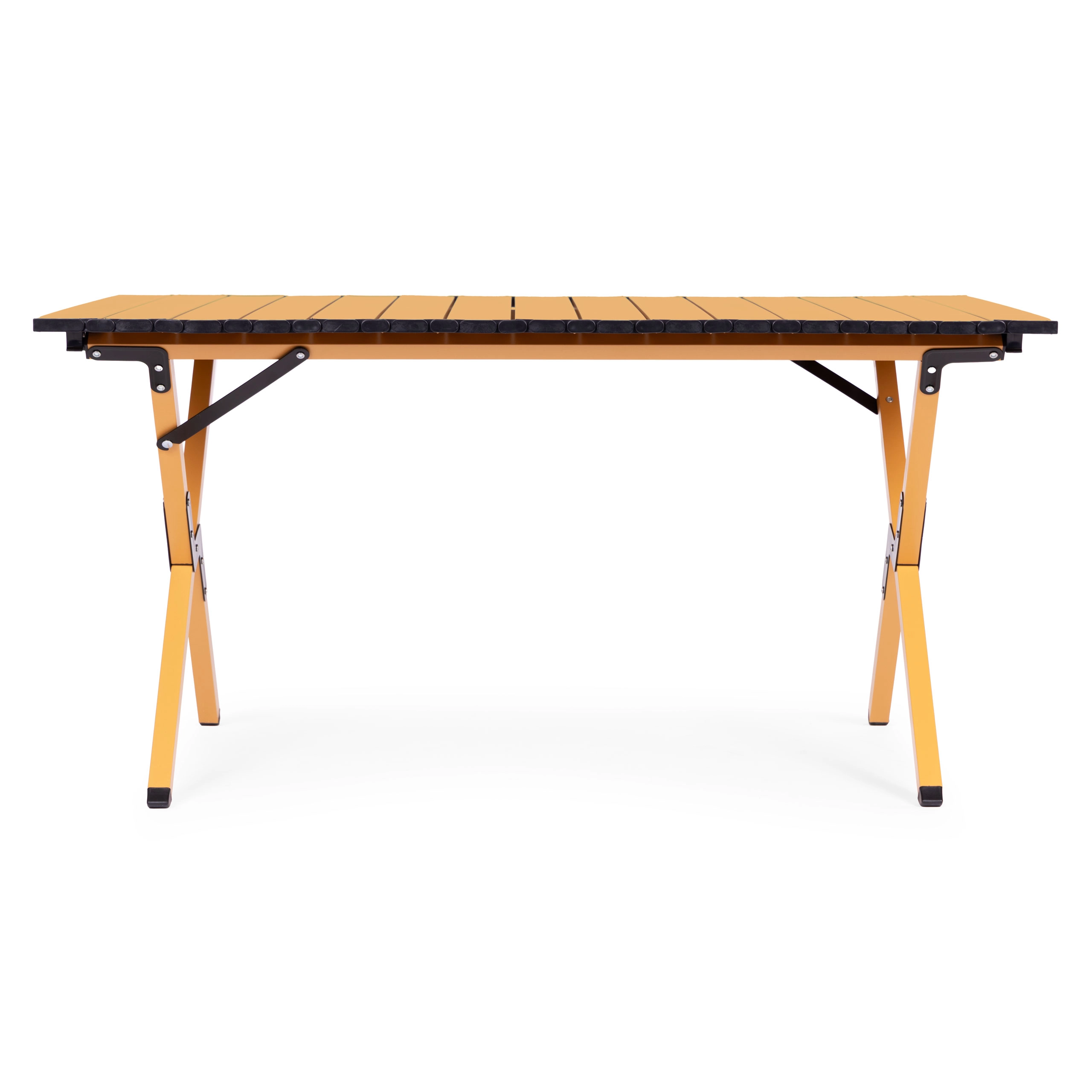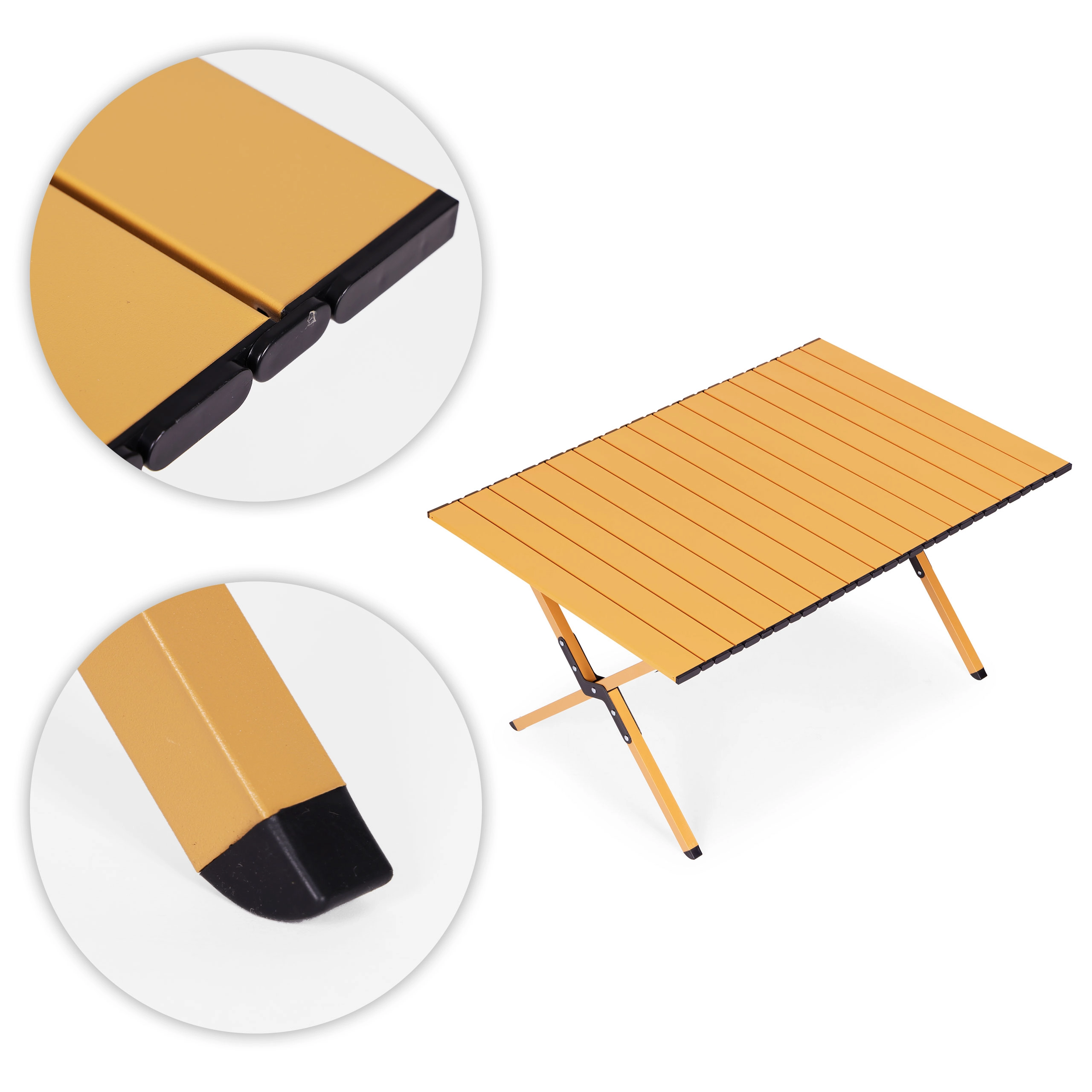 Bucură-te de confort oriunde în aer liber – această masă pliabilă ușor de transportat oferă o suprafață stabilă pentru servirea meselor, pregătirea gustărilor și depozitarea băuturilor și accesoriilor. Oțelul carbon asigură rezistență, în timp ce blatul cu lamele rulante se montează ușor cu ajutorul clipurilor de siguranță. Picioarele antiderapante oferă aderență pe iarbă, pământ și terasă.