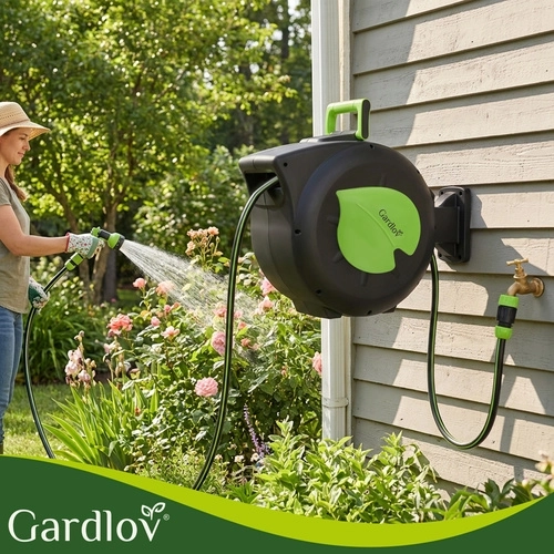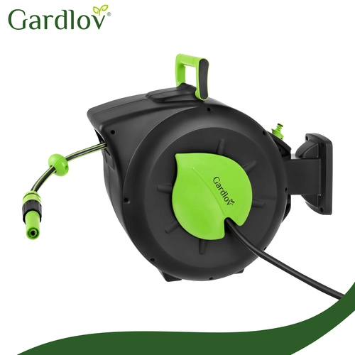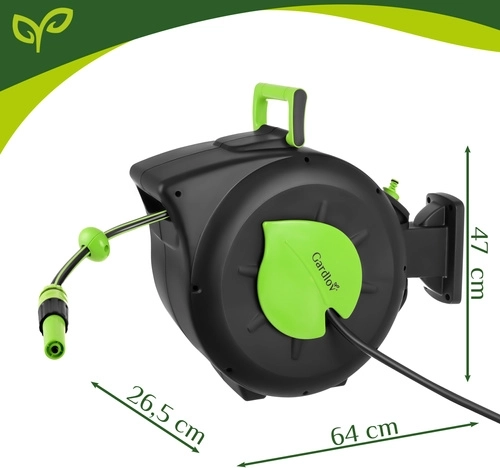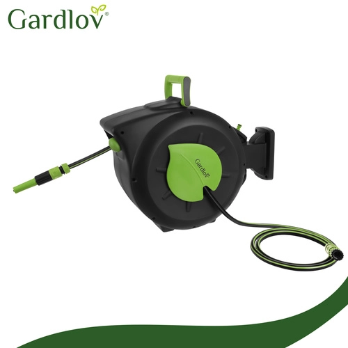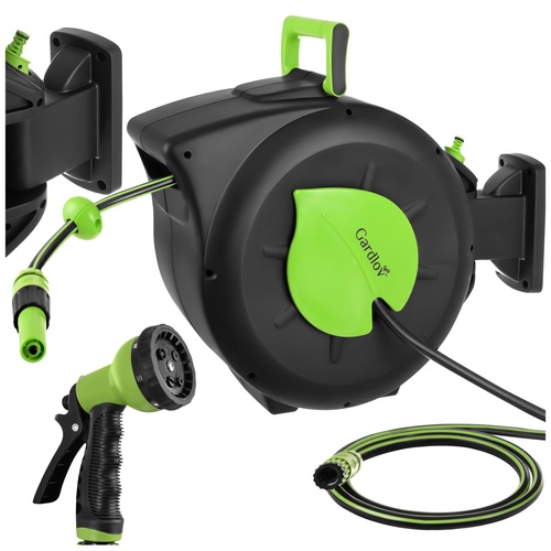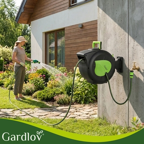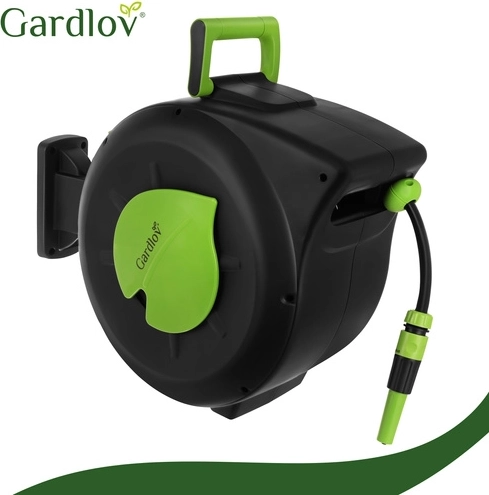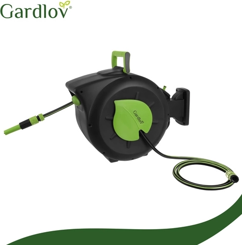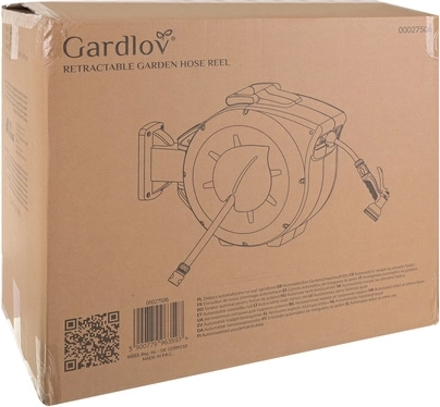 În pachet găsiți: tambur automat GARDLOV, suport de perete, cui de blocare, pistol cu 7 moduri, duză reglabilă, furtun de grădină 30 m, furtun de alimentare 2 m, adaptor universal pentru robineți, cuplă 1/2", cuplă rapidă 1/2", 4× dibluri, 4× șuruburi, manual multilingv și ambalaj color al producătorului.