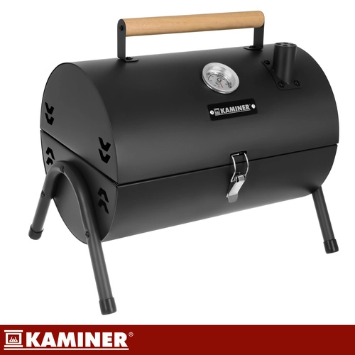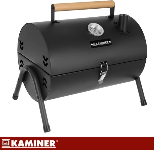 Grătarul de călătorie compact KAMINER îmbină portabilitatea cu controlul precis al temperaturii datorită capacului cu termometru integrat. Două grătare cromate și două tăvițe pentru cărbuni asigură căldură uniformă, împărțirea comodă a zonelor pentru carne și legume și întreținere ușoară. Construcția durabilă cu vopsea rezistentă la temperaturi înalte, ventilație și coș de fum oferă rezultate stabile atât acasă, în grădină, cât și în excursii.