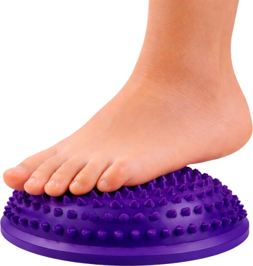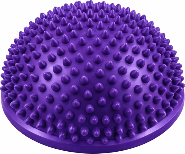 Semisfera mov, cu diametrul de 16 cm, este un accesoriu universal pentru antrenamentul echilibrului, stabilizarea zonei centrale a corpului și stimularea senzomotorie. Proeminențele conice masează ușor tălpile, susțin circulația și activează mușchii bolții plantare. Este ideală pentru copii și adulți – pentru acasă, grădinițe, școli și cabinete de fizioterapie.