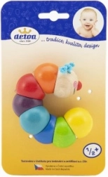 Materialul sigur și netoxic îndeplinește toate normele europene privind siguranța jucăriilor. Jucăria este ideală pentru primele descoperiri ale formelor și culorilor și, datorită lungimii de 13 cm, încape ușor în cărucior sau în geanta de călătorie.