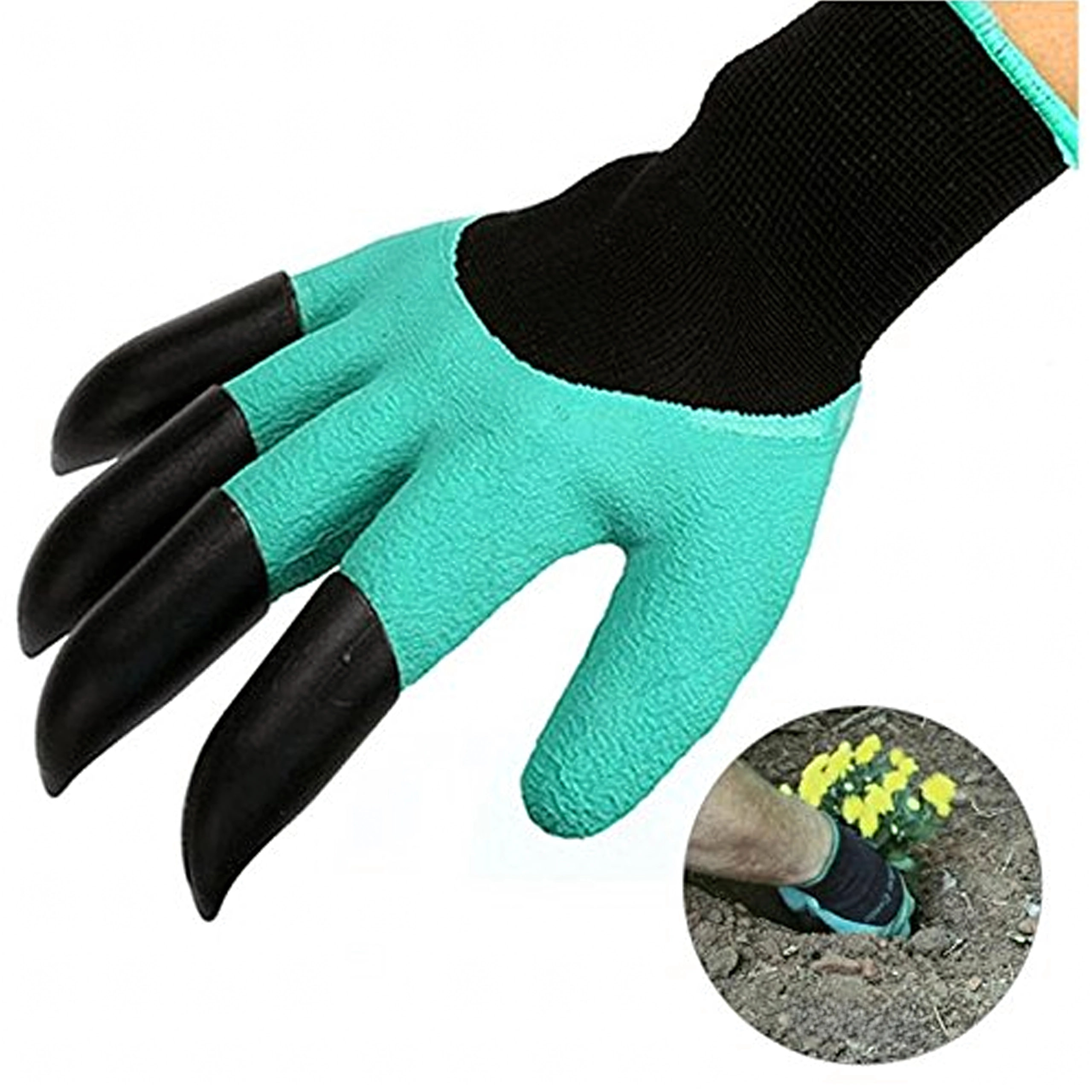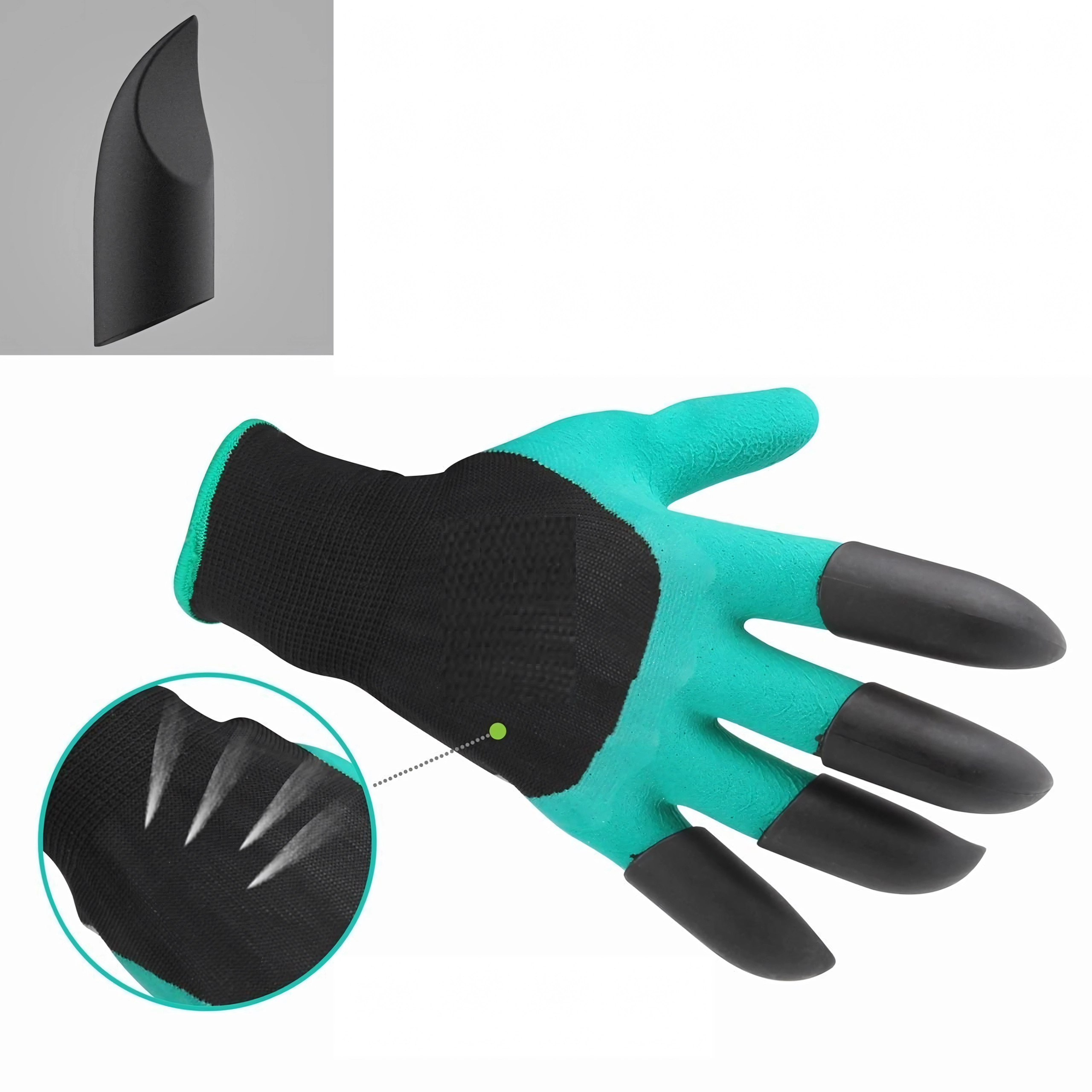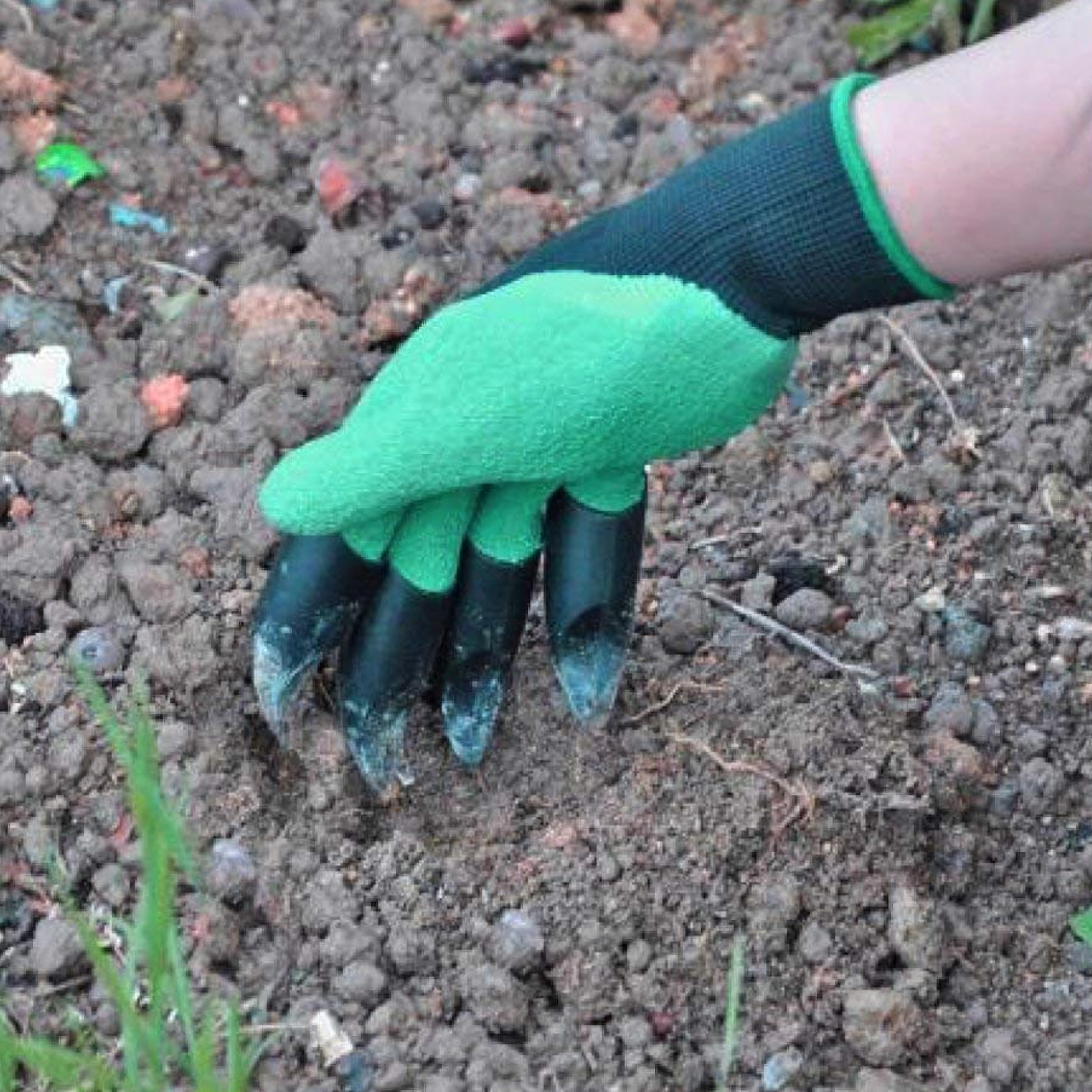 Vârfurile din plastic integrate pe degete permit, în câteva clipe, săpați gropițe, afânați solul și răzuiți mizeriile mărunte, fără alte unelte.