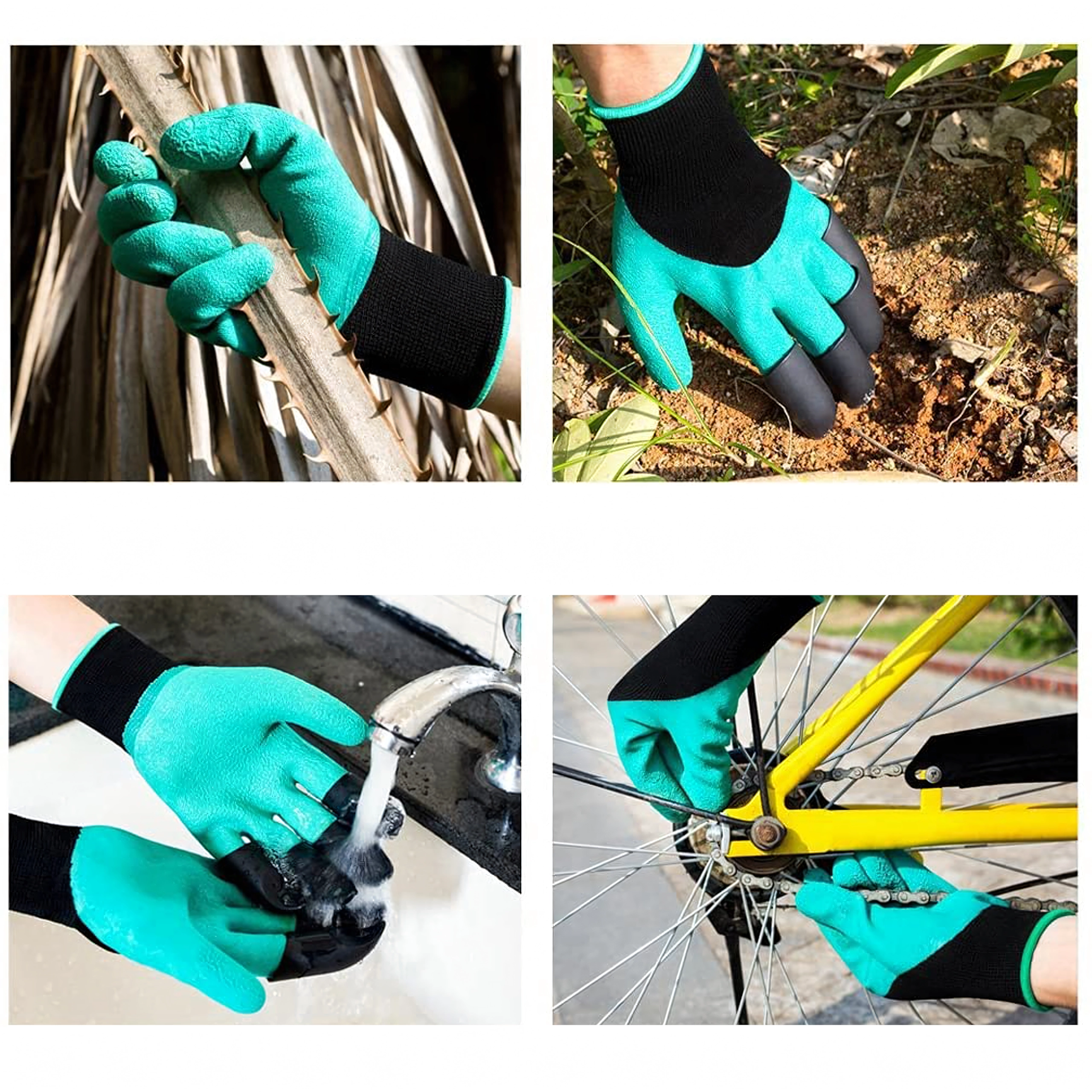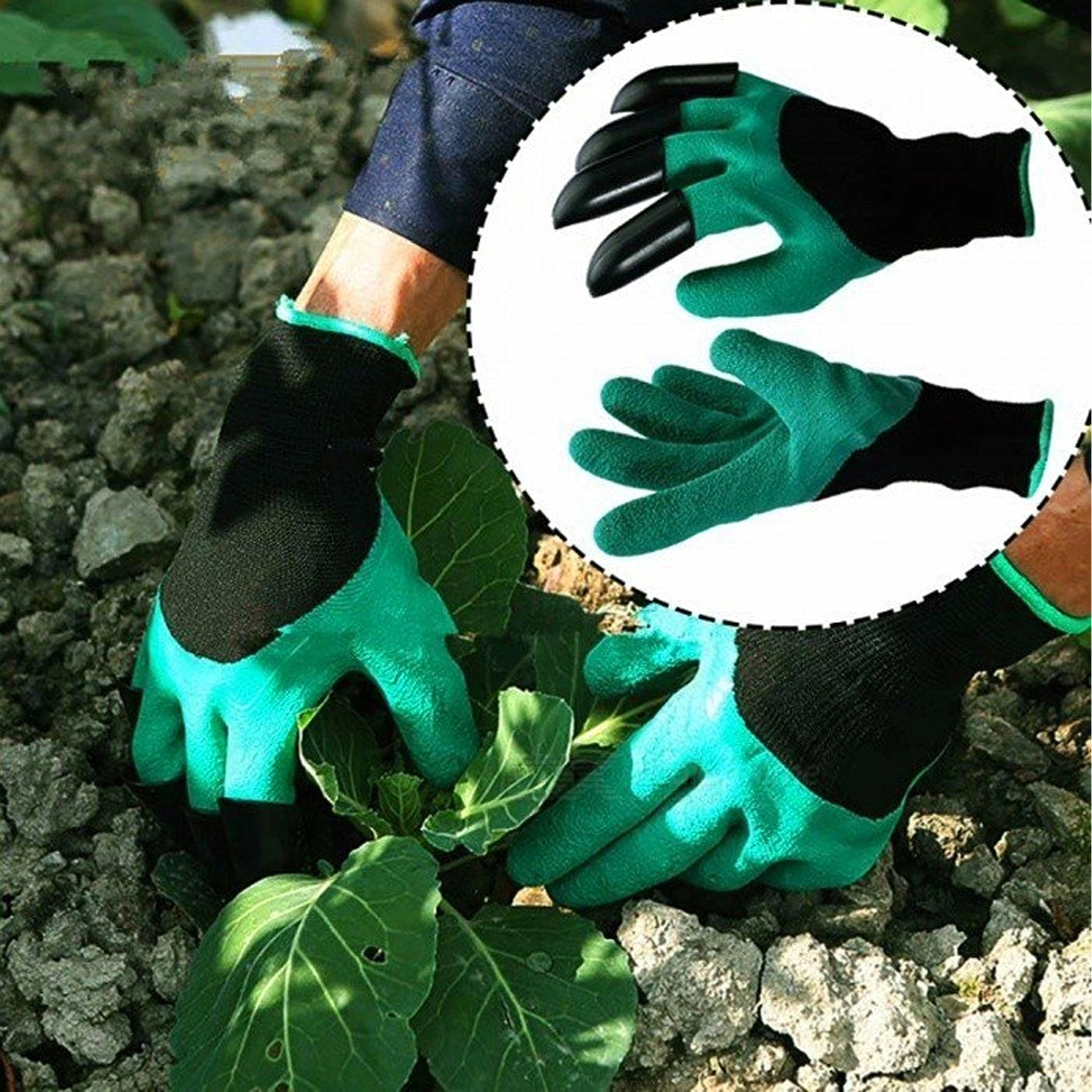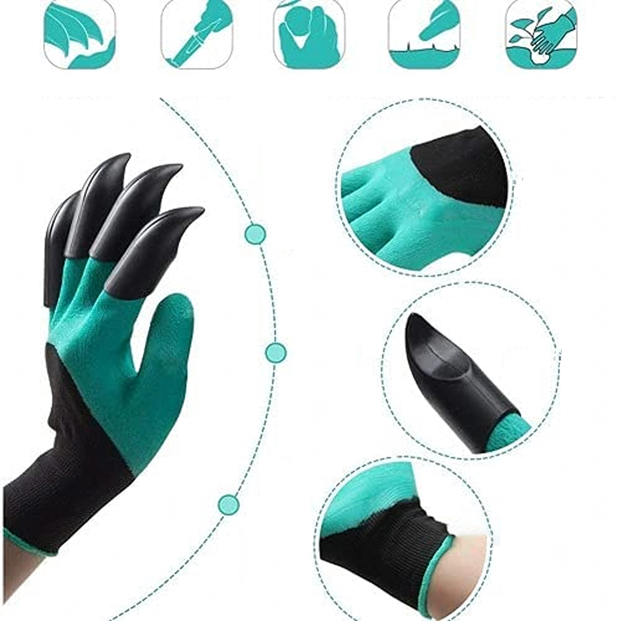 Vârfurile din plastic integrate pe degete permit, în câteva clipe, săpați gropițe, afânați solul și răzuiți mizeriile mărunte, fără alte unelte.