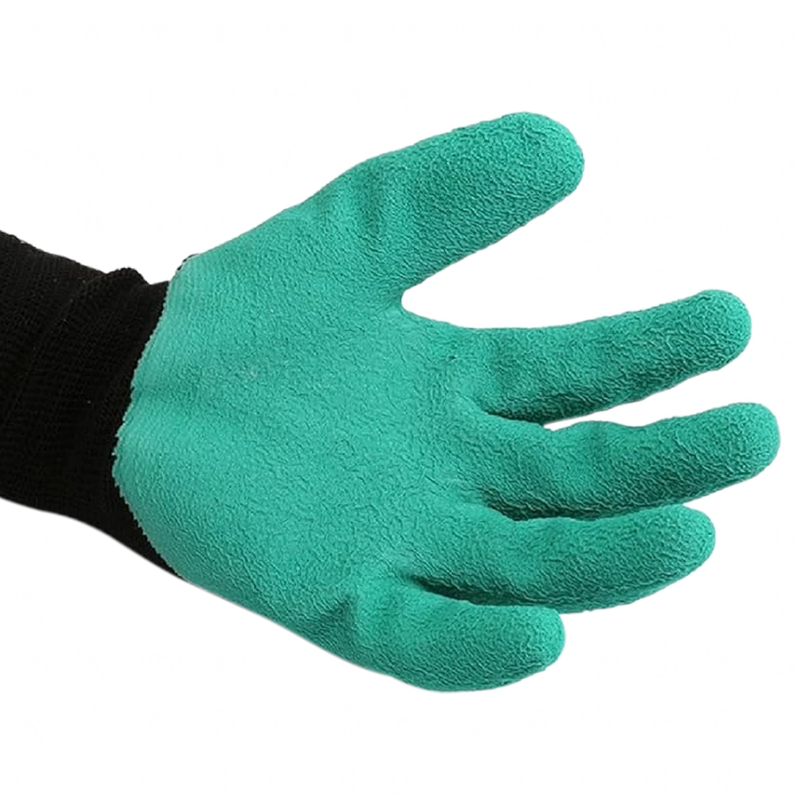 Suprafața texturată din cauciuc a palmei îmbunătățește priza pe unelte și plante, reduce alunecarea și crește rezistența la abraziune.