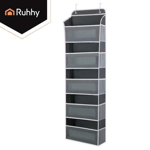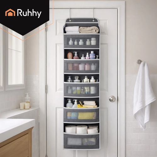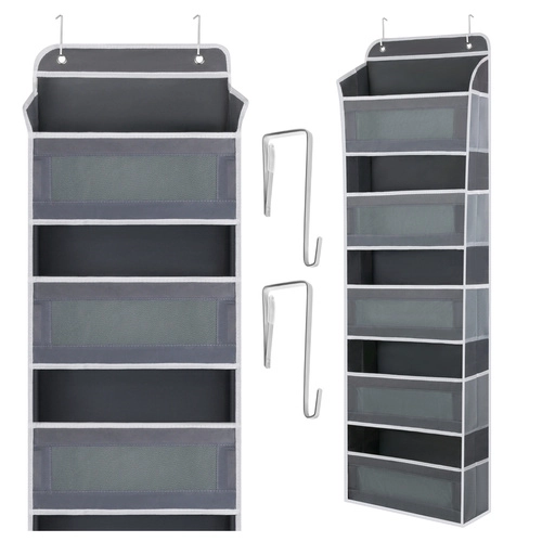 Se agață ușor pe ușă cu ajutorul cârligelor metalice și obțineți imediat 5 rafturi și buzunare laterale pentru organizare eficientă.