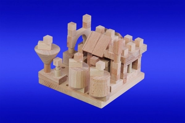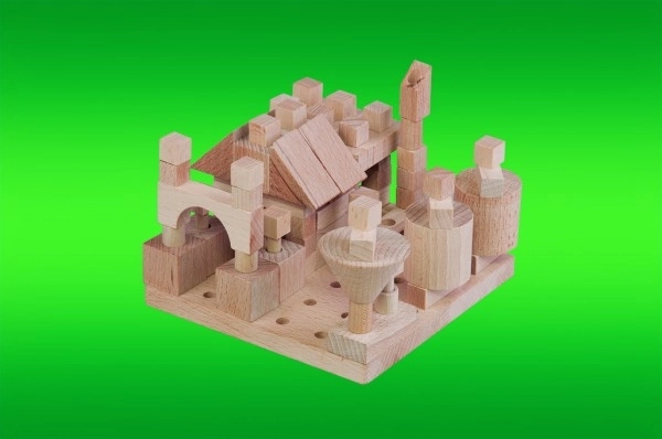Setul de construcție din lemn Detoa Micul arhitect este alegerea ideală pentru micii constructori. Datorită diferitelor forme și dimensiuni ale pieselor, copiii pot crea nenumărate variații de construcții și modele. Baza cu orificii găurite și tijele facilitează asamblarea și susțin precizia și răbdarea.