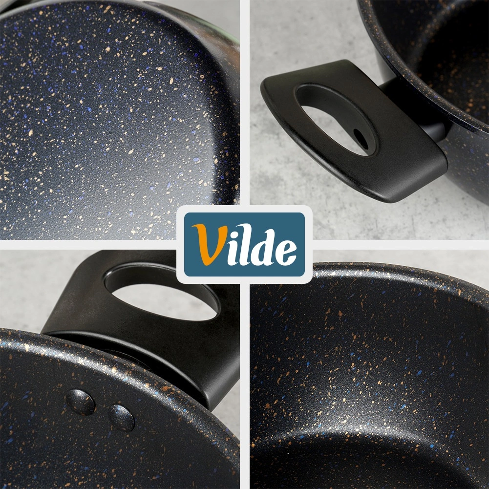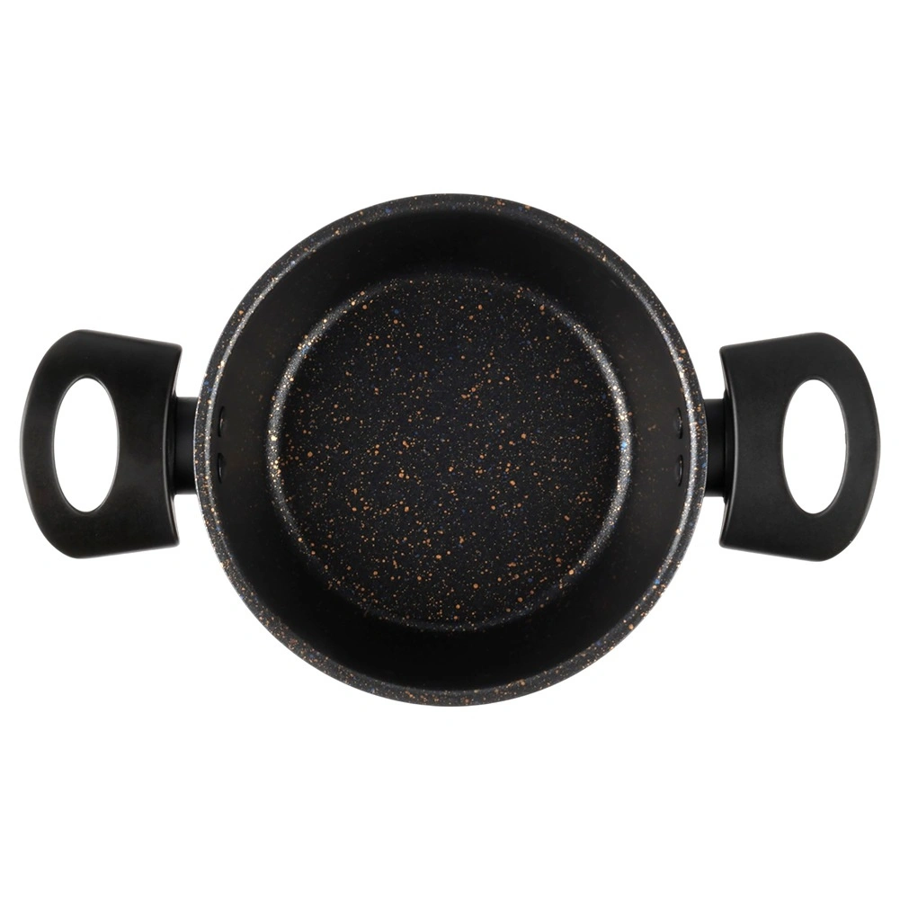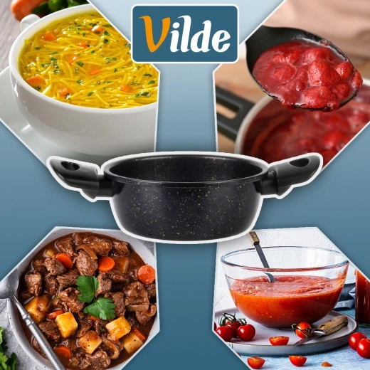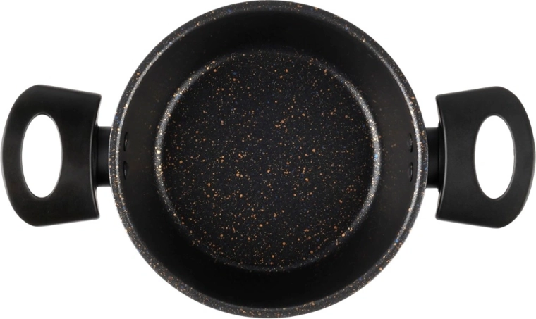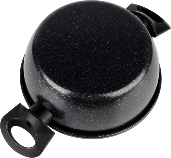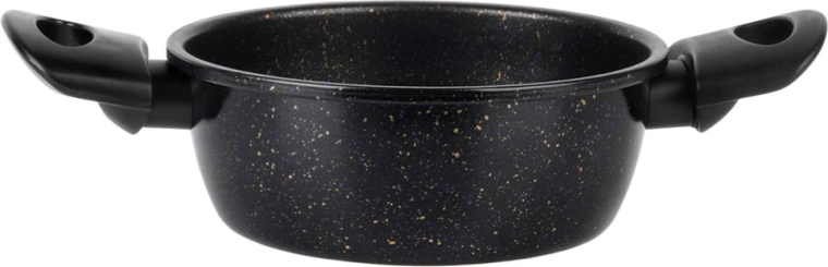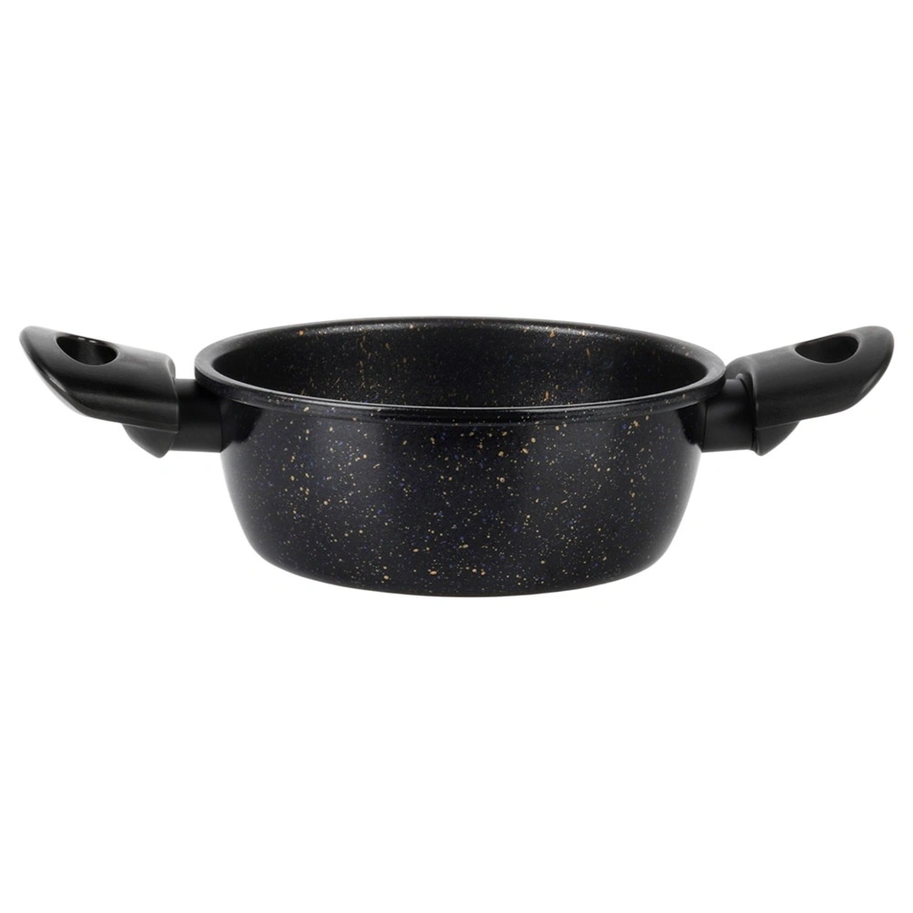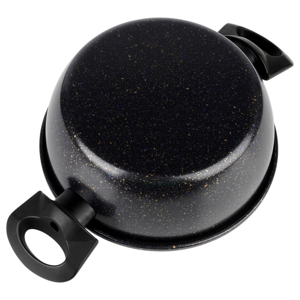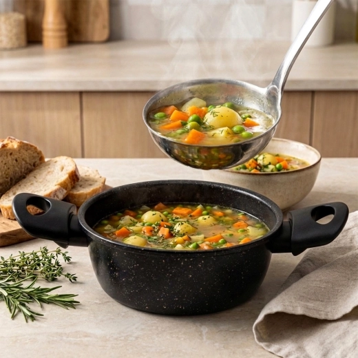Oala practică, cu acoperire antiaderentă din granit, ușurează prepararea supelor, sosurilor și legumelor. Corpul din oțel carbon gros distribuie uniform căldura, iar suprafața cu efect de piatră minimizează lipirea și reduce timpul de curățenie. Mânerele laterale ergonomice din plastic rezistent fac mai plăcut transferul de pe plită pe masă.