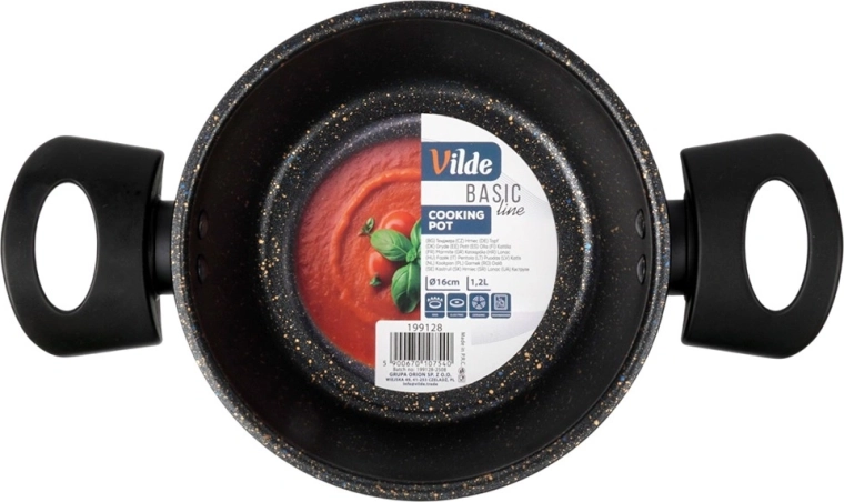 Oală compactă din granit din gama Basic Line cu diametrul de 16 cm și volumul de 1,2 l, ideală pentru gătit zilnic, înăbușire și încălzire. Acoperirea antiaderentă din granit permite gătitul cu minimum de grăsime, iar mânerele lărgite asigură o prindere sigură și o manipulare ușoară. Potrivită pentru plite pe gaz, electrice și vitroceramice, se poate spăla în mașina de spălat vase.