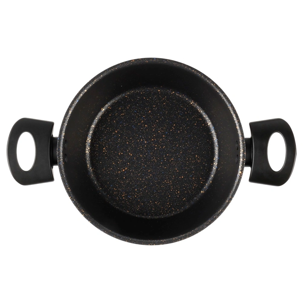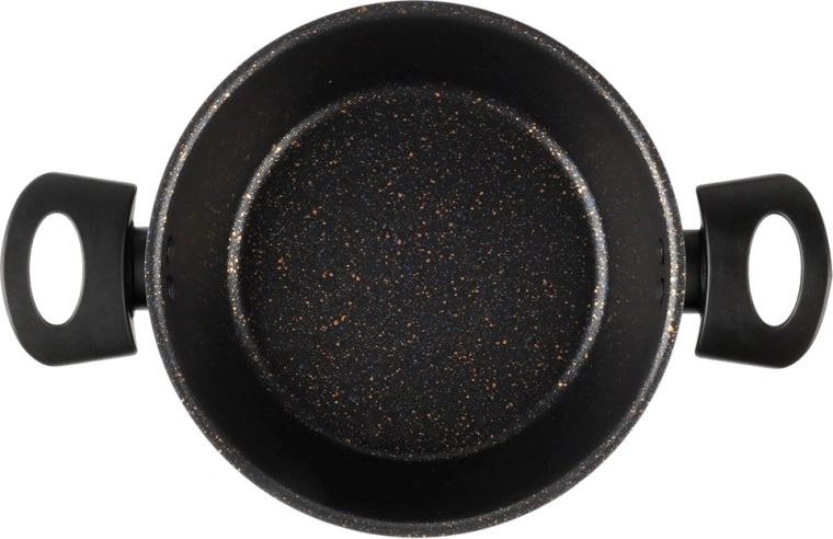 Oală practică din granit cu volum de 2 l și diametru de 20 cm, cu suprafață antiaderentă rezistentă pentru gătit cu minimum de grăsime. Mânerele late ergonomice asigură o manipulare sigură, oala este potrivită pentru plite pe gaz, electrice și vitroceramice și poate fi spălată în mașina de spălat vase (nu este destinată inducției).