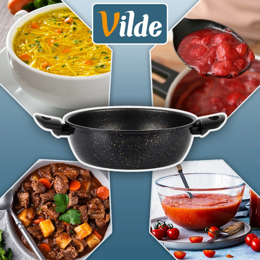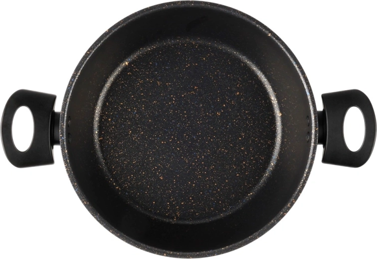 Oala îndrăgită din gama BASIC LINE este fabricată din oțel carbon rezistent, cu strat din granit antiaderent. Corpul lat și fundul stabil asigură distribuție uniformă a căldurii, fiind excelentă pentru supe, sosuri, legume și mâncăruri zilnice pentru familie. Două mânere laterale ergonomice facilitează transportul în siguranță.