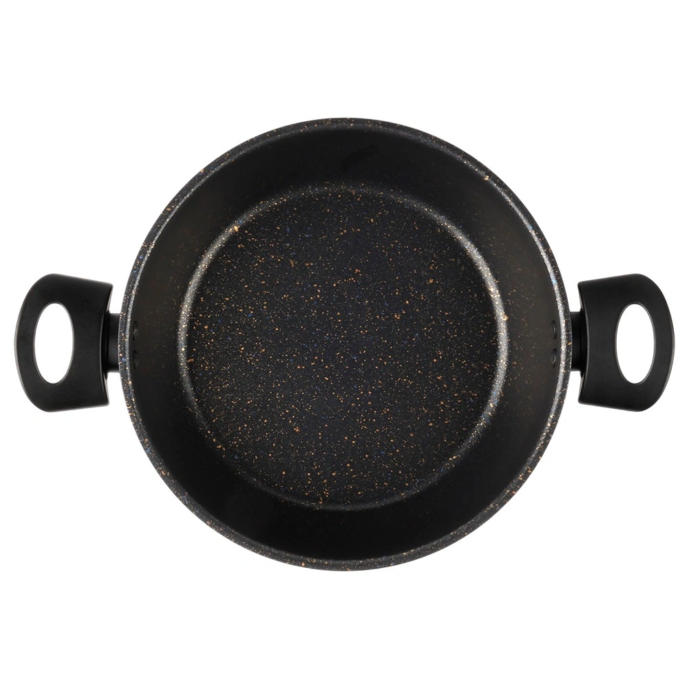 Oală practică din granit, cu volum de 2,7 l și diametru de 24 cm, ideală pentru gătit zilnic, înăbușire și încălzire. Datorită stratului antiaderent din granit gătești cu minimum de grăsime, se încălzește uniform și se curăță ușor – este potrivită pentru mașina de spălat vase. Compatibilă cu plite pe gaz, electrice și vitroceramice (nu pentru inducție).