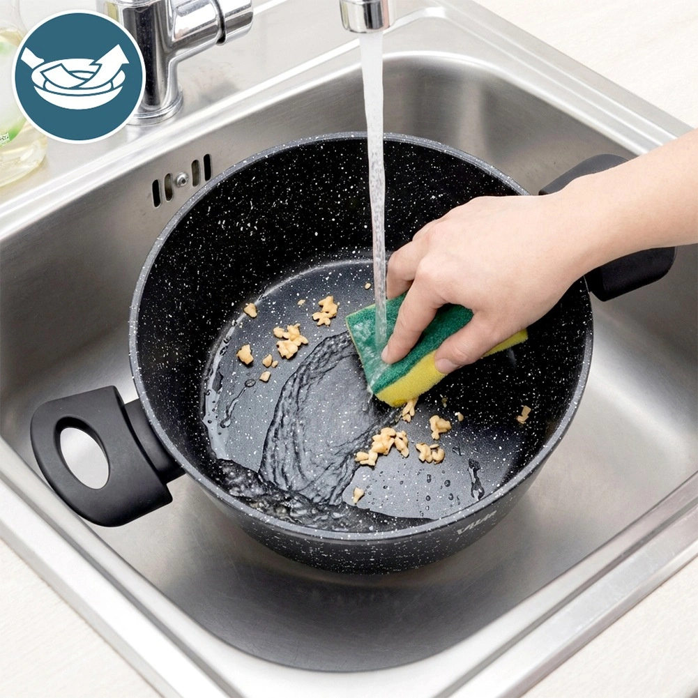 Acoperirea avansată din granit minimizează lipirea, facilitează eliberarea preparatelor și scurtează timpul de curățare.